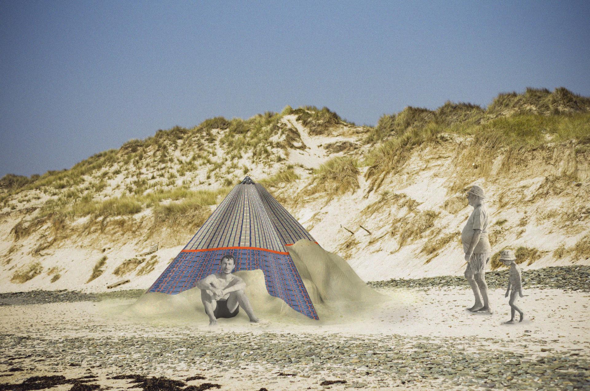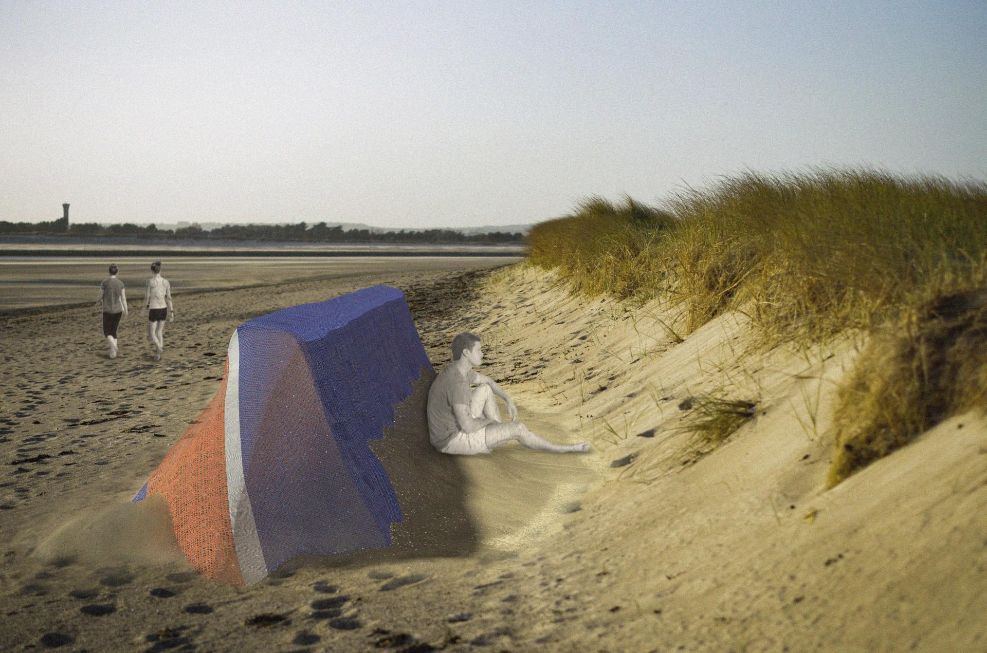This concept might reconnect human and non-human in this specific environment, which is west Normandy. With a soft human investment, the aim is to show how dunes landscapes are moving to increase human sensitivity towards nature. The goal is mainly to show how dunes are building themselves because of the wind.