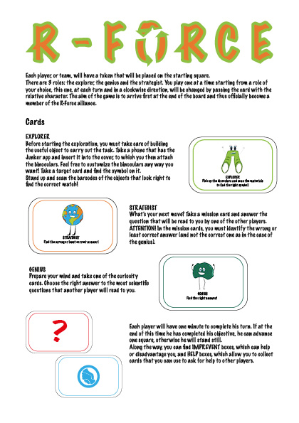 R-Force encompasses all this by sinking the themes of environmental sustainability and addressing them to the whole world, to all children and all parents or teachers who come with them. You can play it at home with friends, at school as a teaching method or as an input for children's workshop in leisure centre.