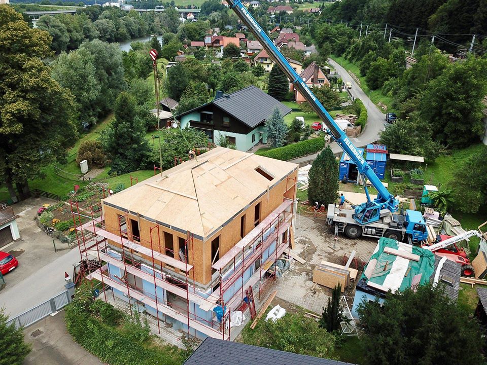 An affordable transformation of a 1930ies building into an aesthetically pleasing, Bauhaus-inspired modern structure has been achieved. The building has so far been changed by each generation: whilst the original structure has been erected by my great grandparents, a ground-floor annex on the south side has been added by my grand-parents in 1966 and the attic was converted into an apartment in 1983 by my parents. Now the whole building has undergone a facelift and was changed into a modern, Bauhaus-inspired multi generation home.