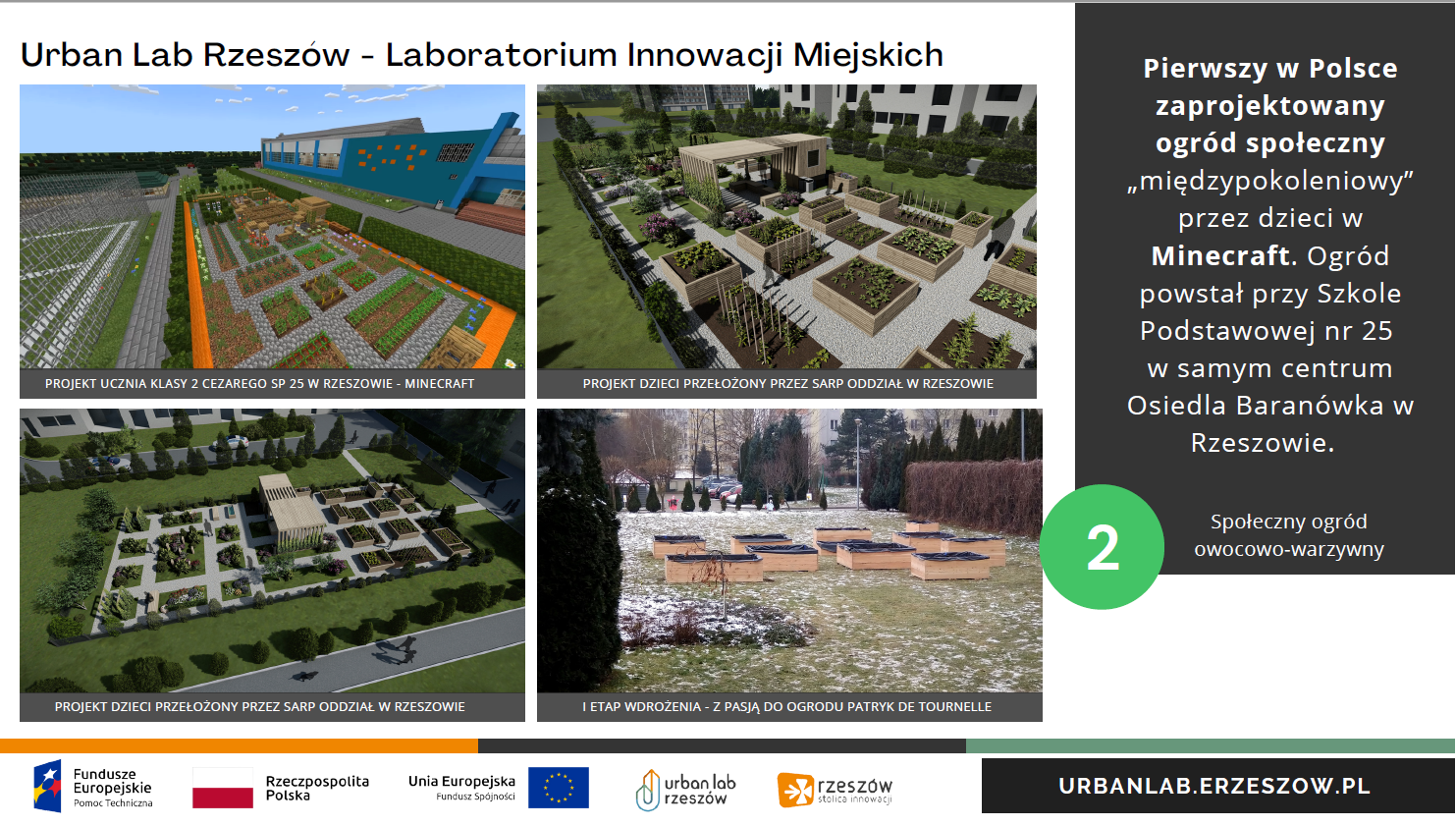 The tasks are undertaken in the project “Rzeszow to Us” have an impact on the change of the environment, thus showing the space of the city focused on the resident and his needs through the implementation of eco-innovative solutions that affect the reconstruction of the natural ecosystem. The implementation of the assumptions made it possible to develop a “map” of good practices that can be touched, see the tangible effects of cooperation and involvement of residents in a long-term project, which turned out to be the city as open to residents' ideas, involving little financial, human and material resources to implement the ideas.