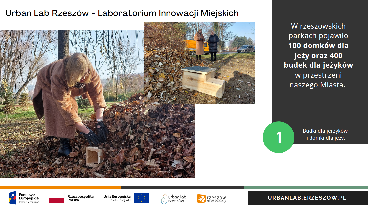Another essential element of the project are booths for swifts and houses for hedgehogs, and here it should be considered that the city becomes friendly to wild animals, allows them to settle in the urban space, and thus fights for the area of nature by eliminating the spraying against mosquitoes. The booths for swifts and hedgehog houses fit perfectly into the element of the City are consistent with the information message as well as the slogan “Rzeszow, the capital of innovation”, which emphasizes the wide spectrum of urban, social, and technological innovations.