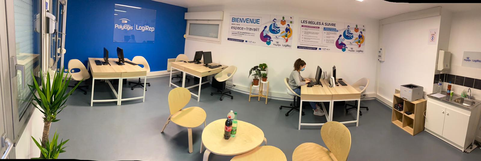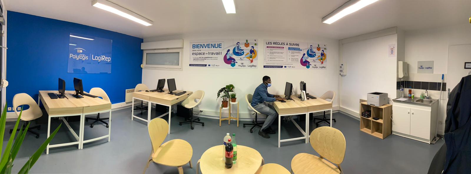 The project is located in Sotteville-lès-Rouen near the city of Rouen in Normandy. The LogiRep property had a vacant room of 30 sqm with an ensuite restroom which made it an ideal place as a co-working space and training room. Renovation work was carried out in last quarter of 2021 with internet connectivity added. LogiRep installed 8 refurbished computers within the spirit of the circular economy, each being equipped with internet connection and an open office pack. Visio conferencing is also available as well as printing facilities. New furniture was purchased to create a warm and cozy environment.