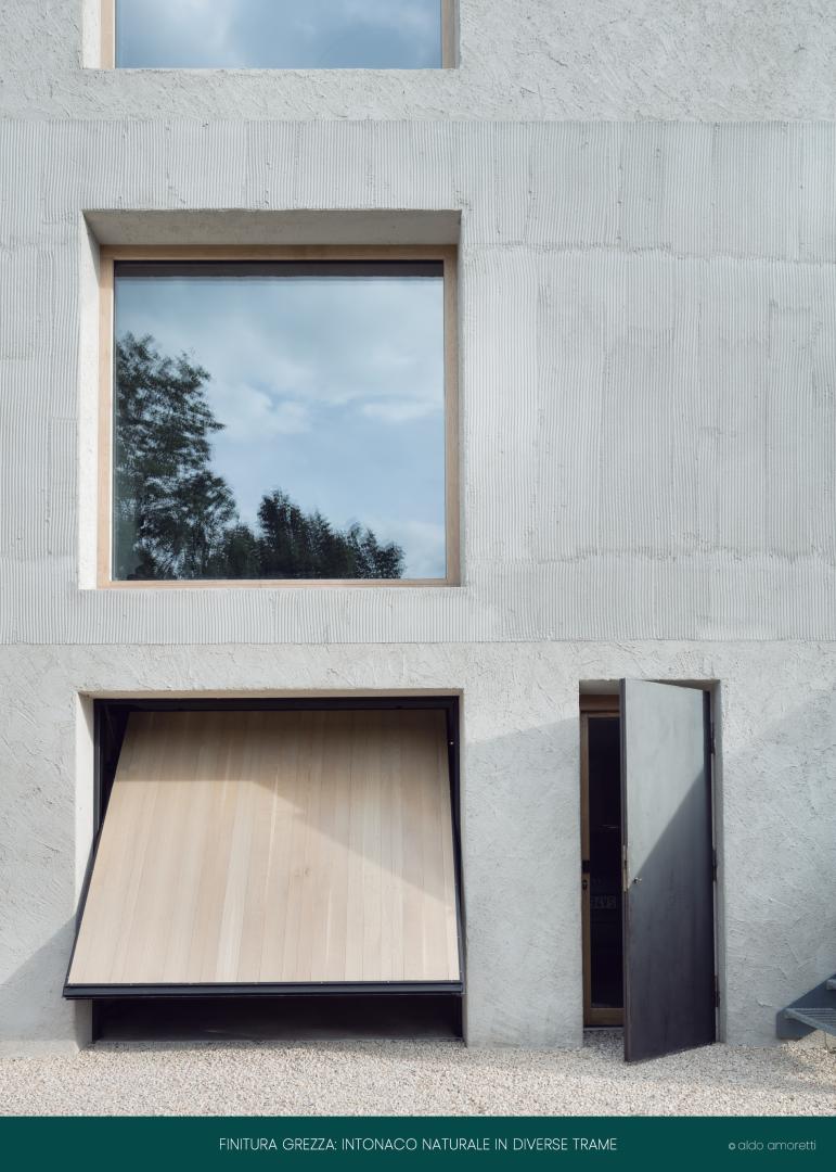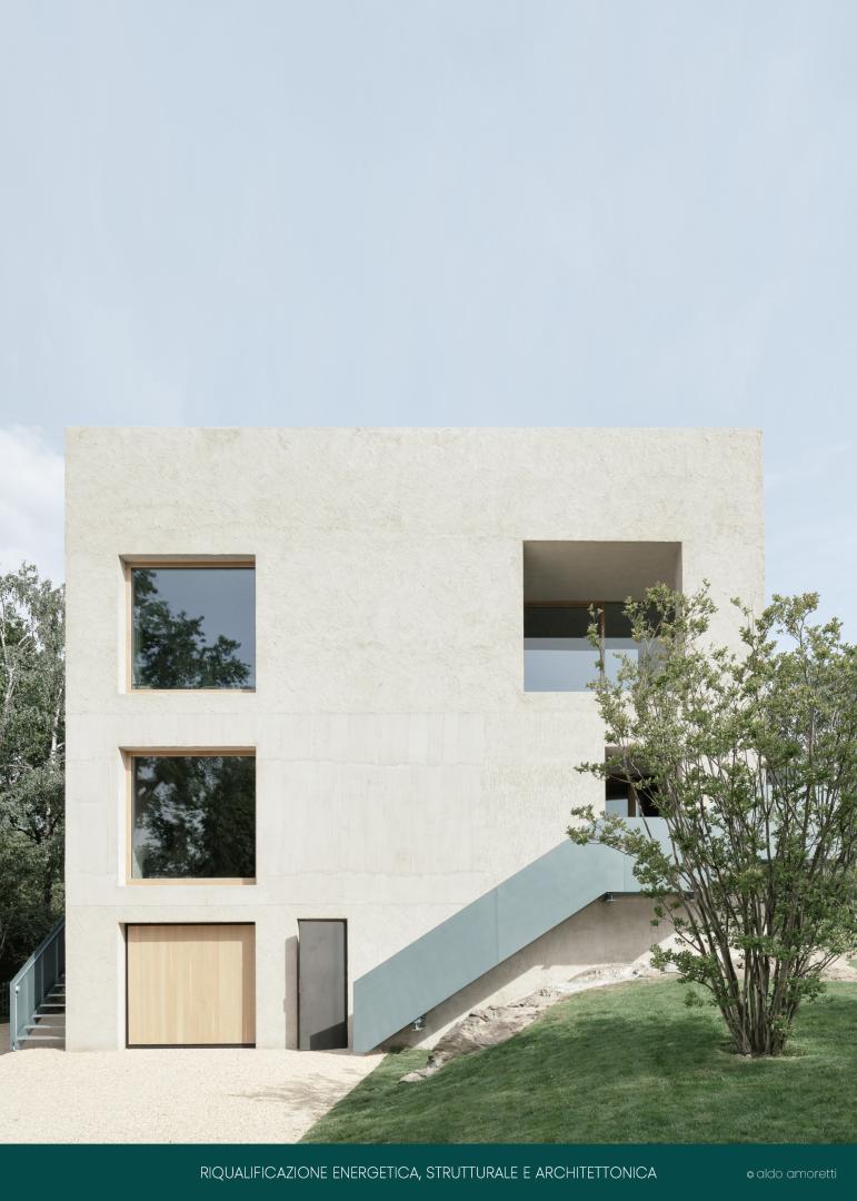 The reuse of the existing, the maintenance of the footprint, the protection of virgin soil are the basic principles of the redevelopment. Sustainability is played on passive strategies to contain energy consumption through the use of a high-performance envelope and an important thermal mass. Ventilation and natural lighting are privileged: the large holes on opposite sides allow you to capture light and solar intake and work with cross ventilation, the tower development, through the stairwell, allows you to implement ventilation with the chimney effect. The electric heat pump heating system is assisted by the use of photovoltaic panels applied to the pergola covering the roof terrace. All the materials have been selected for their characteristics of naturalness (wood, plaster and lime mortar) or high content of recycled materials (cement), regeneration and disposability over time.