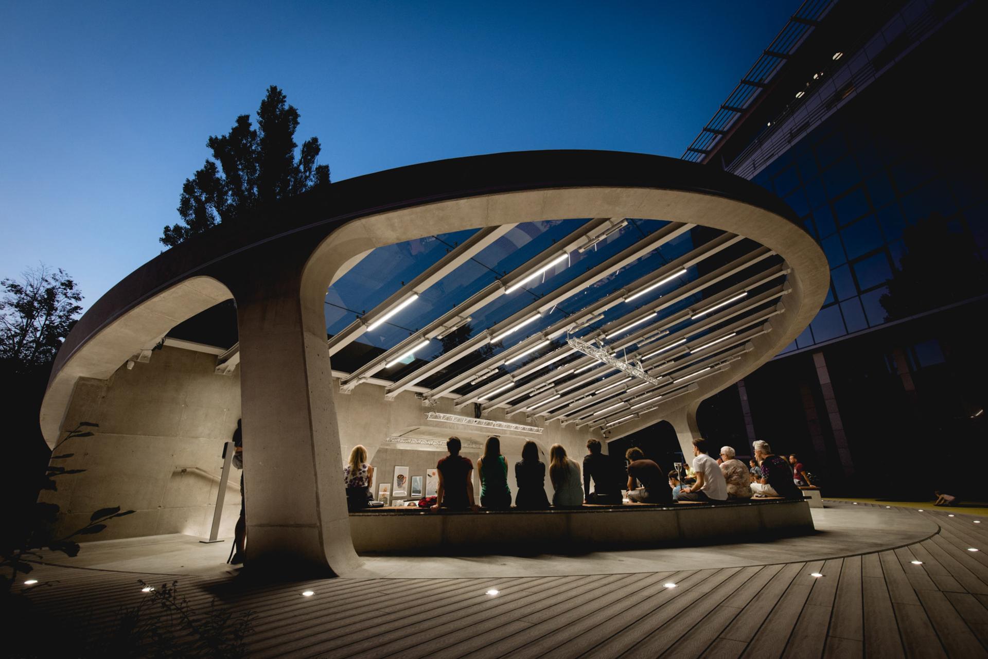 The amphitheater is an open, democratic space for interesting meetings and artistic shows, available to all residents and employees of the business part of Służewiec. The open-air scene was created in response to the challenges faced by the business district of Warsaw - the lack of open public spaces, which would allow meetings in the open air and in a friendly environment.