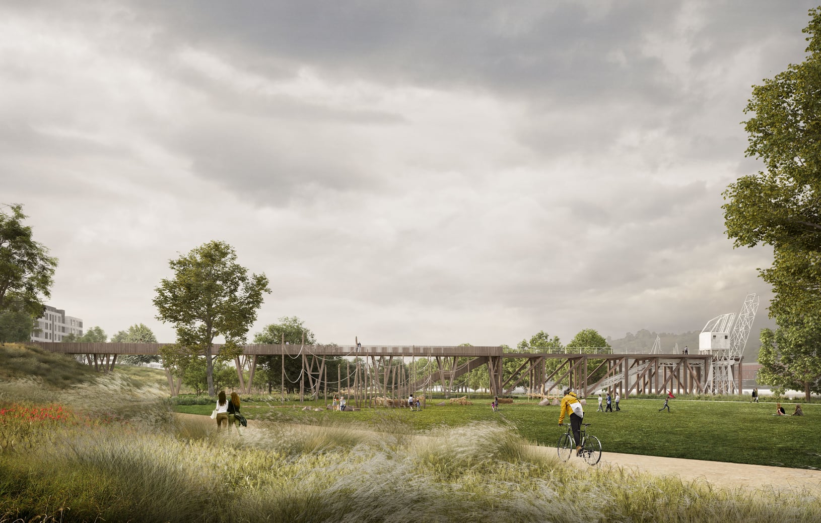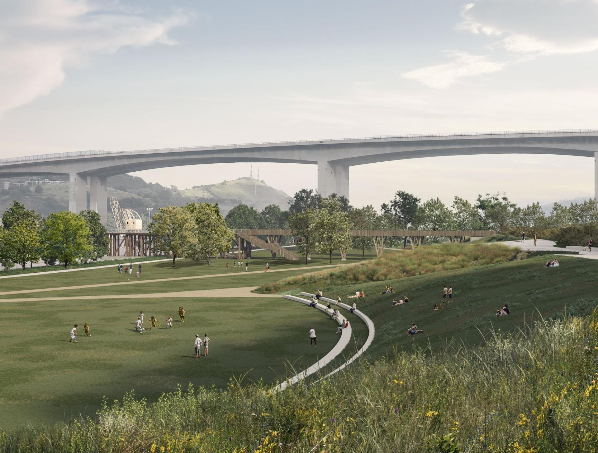 The future park is integrated into the municipal Green Mesh project that unites, with pedestrian and cycle paths, the green spaces of Barakaldo, both urban and peri-urban. A network that connects parks, recreational areas and the main squares of the city. Likewise, it connects with the Green Belt of metropolitan Bilbao that connects different nuclei of the estuary, reinforcing its belonging to this broader natural area.