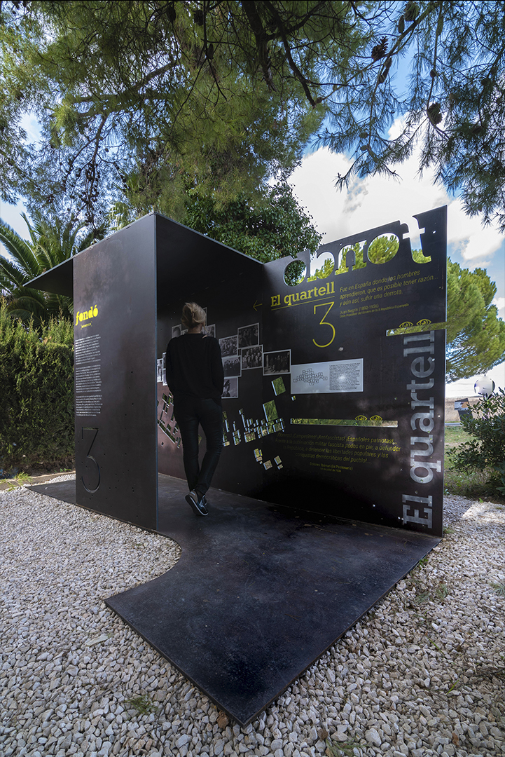 The Fondó Museum is free to visit, laying in the landscape, made up of four milestones that tell the history of the place, intertwining with the district and the paths in which, like sculptures that speak, make the visitor become a constructive detail of what is being told.
