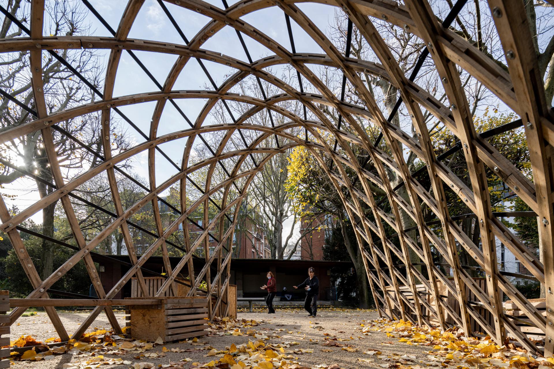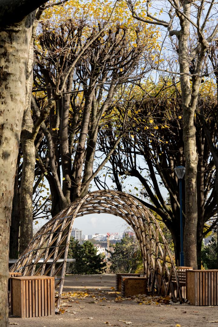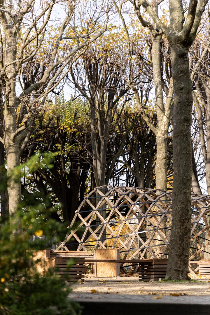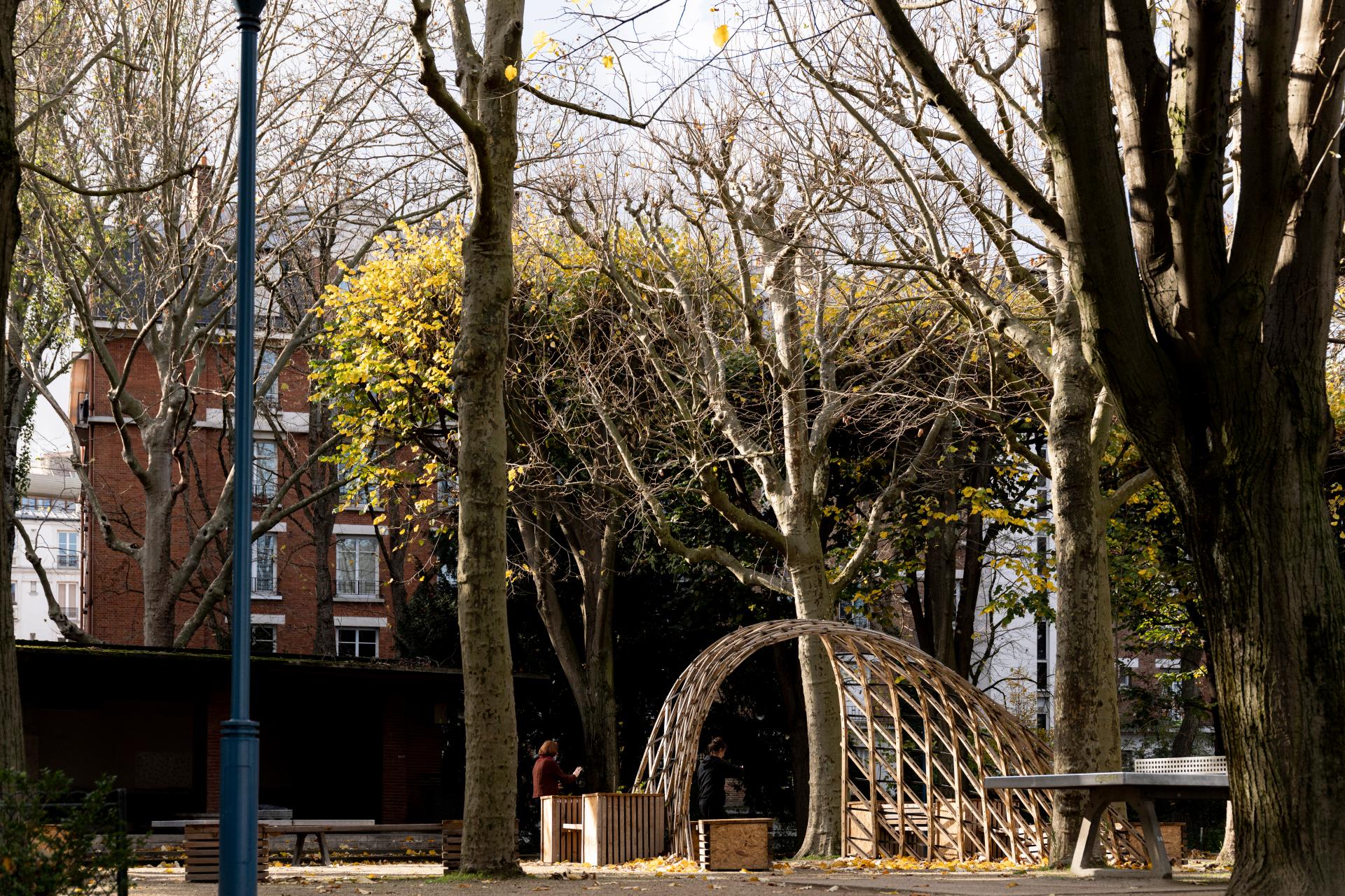 - The practical application of our study by constructing a full-scale public pavilion, in partnership with the municipality of Paris on the belvedere of the Butte du Chapeau Rouge park (Paris XIX).