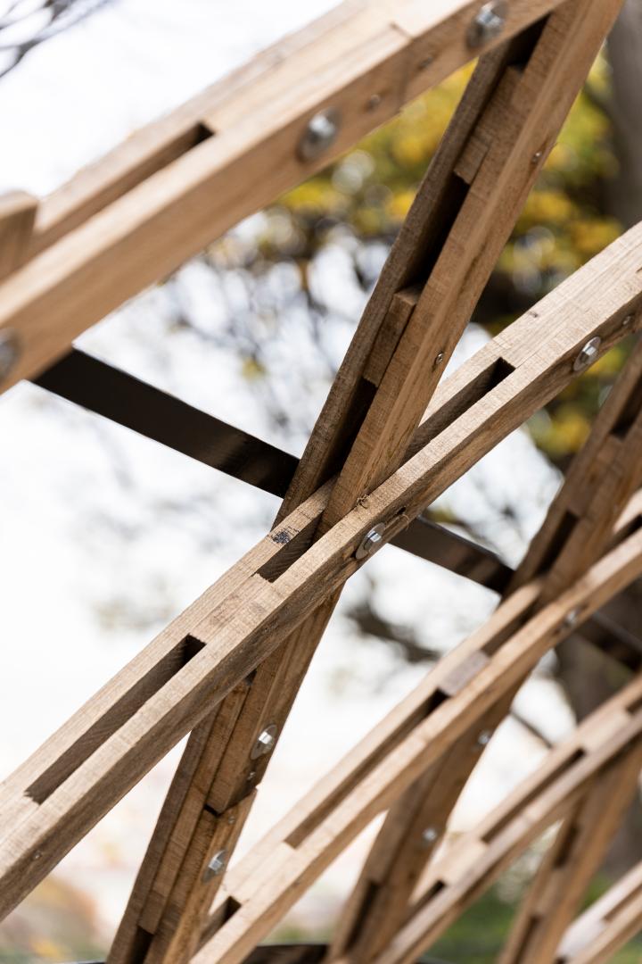 Our university collective is working on a concept of design, studies, and construction of elastic gridshells of all sizes for a public use, in order to :