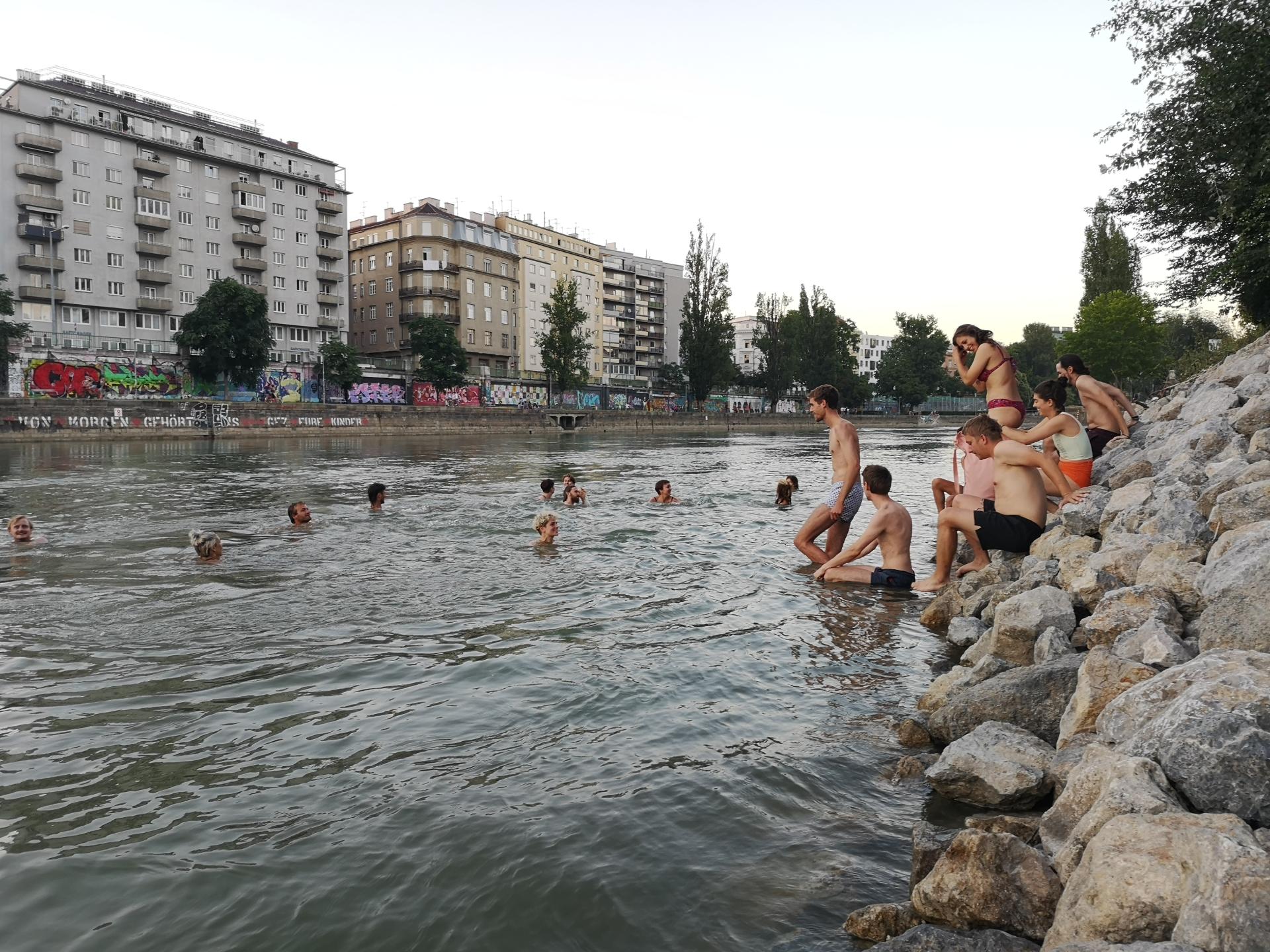Parts of Donaukanal banks are concrete-free, vegetated and offer direct access to the water - we use the banks to go swimming. The channel, thus, offers shade and cooling opportunities during heatwaves and makes Vienna resilient towards climate change.