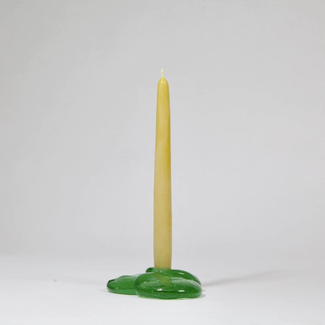 The homeware collection was designed to fulfil a functional purpose whilst being attractive aesthetically. The vase is shaped to be timeless but uses unexpected textures of the glass to its advantage, such as for example fine air bubble inclusions, colour swirls and varying colours. This generates some unseen effects for serial objects of this typology. The wall hooks are unexpected in materiality for their function but recognisable in their shape. By challenging the assumed fragility of glass and applying it as a weight-bearing item, it is intended to draw attention to the unique tensile strength of glass when shaped in this way. The candleholders use the parallel between the liquid state of the glass and the liquid state of the candle wax as an aesthetic reference. All those products have in common that they rely on the hand-made qualities that come with glass production of this scale, making each of the items clearly belonging and recognisable yet unique in appearance. Visible laser engravings label the items and material for their origin, date and place of transformation in an attempt to include the consumer in the journey of the materials and objects.