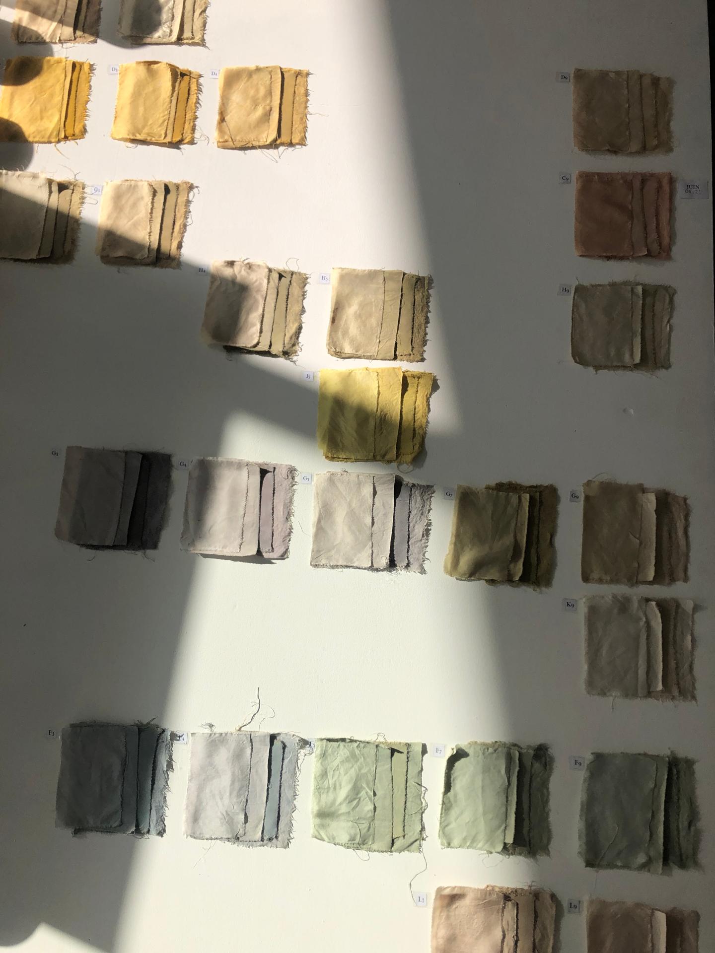 In order to give an account of this, I am developing both a color chart on various textile samples (silk, viscose, linen, cotton) as well as textile pieces that are closer to the typology of clothing.