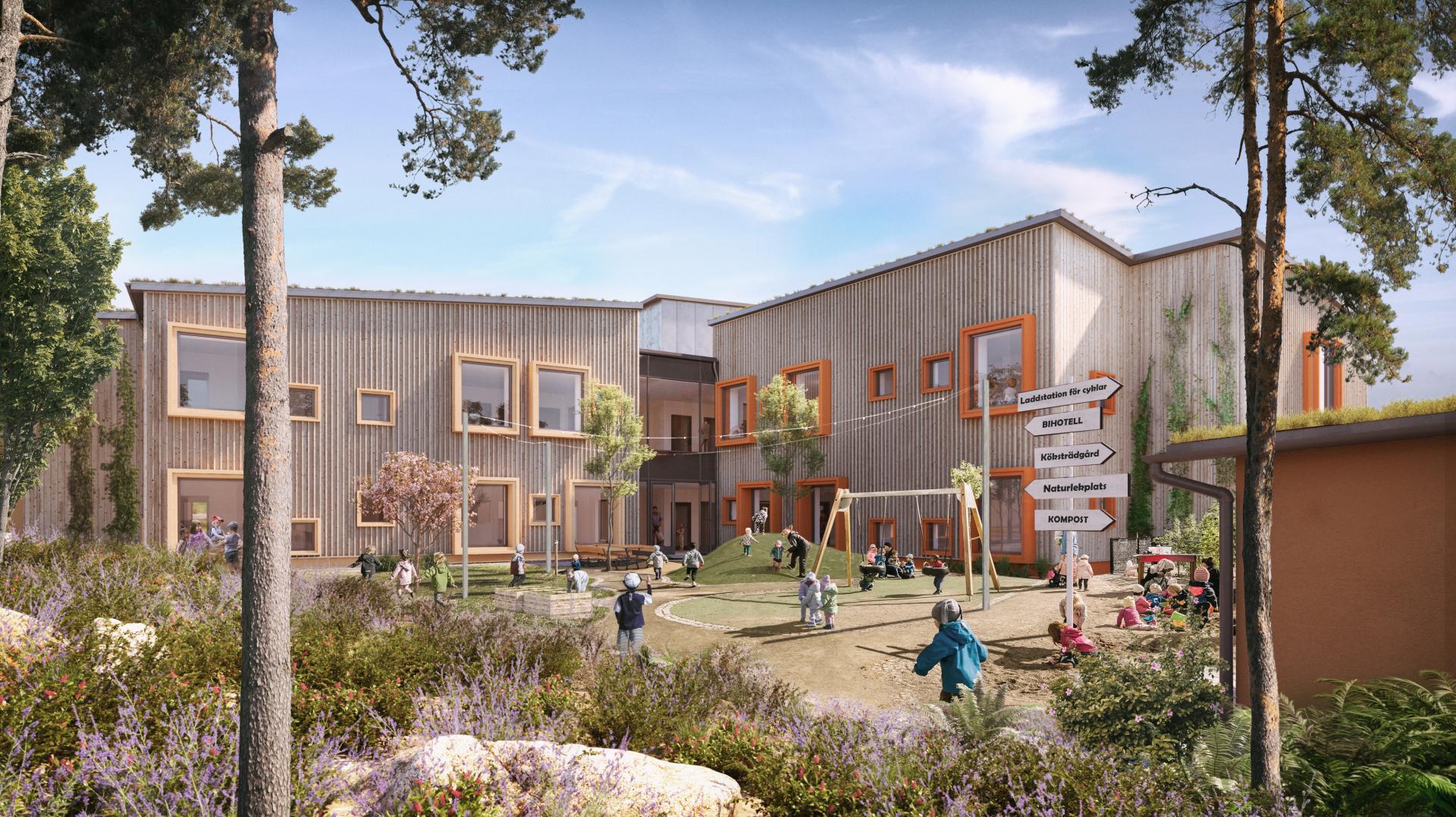 Further, the fossil-free ideals enshrined in the construction process have been included in the pedagogical mission of Hoppet. At the school yard, the children can learn how to reduce their own carbon footprint through discussing topics such as: personal waste reduction, material reuse and energy efficiency. In this way, Hoppet seeks to instil values of sustainability early on in childhood education.