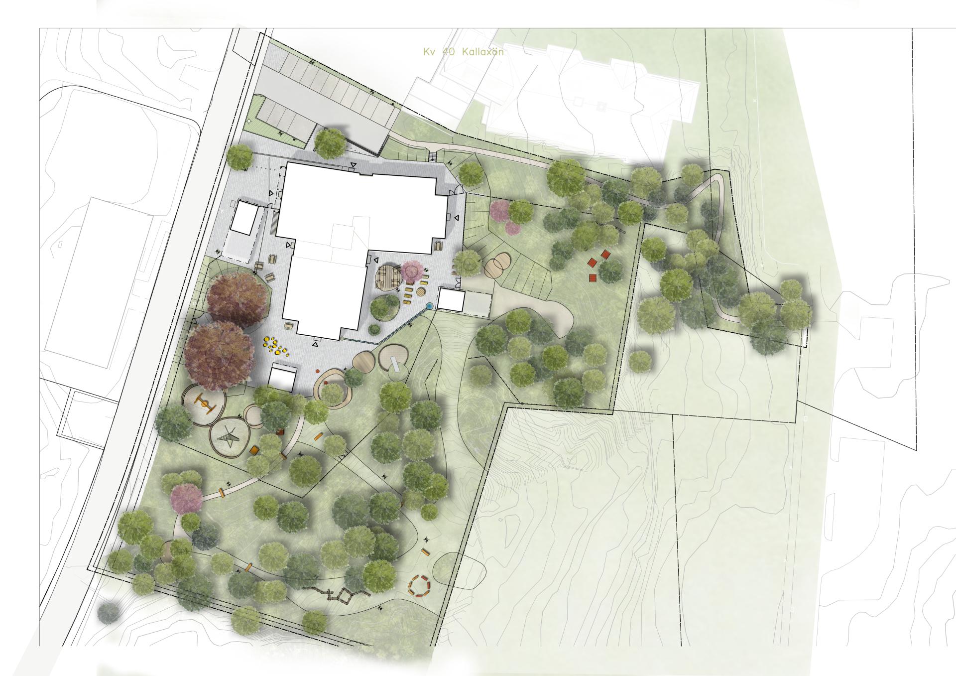 Our objectives in terms of quality of experience are closely linked to the playground design. Given the current densification rate of Gothenburg, it was important that Hoppet gave the children access to an authentic natural outdoor space on its premisses. On the playground, the children can curiously and safely explore their natural surroundings and develop a healthy relationship to nature.