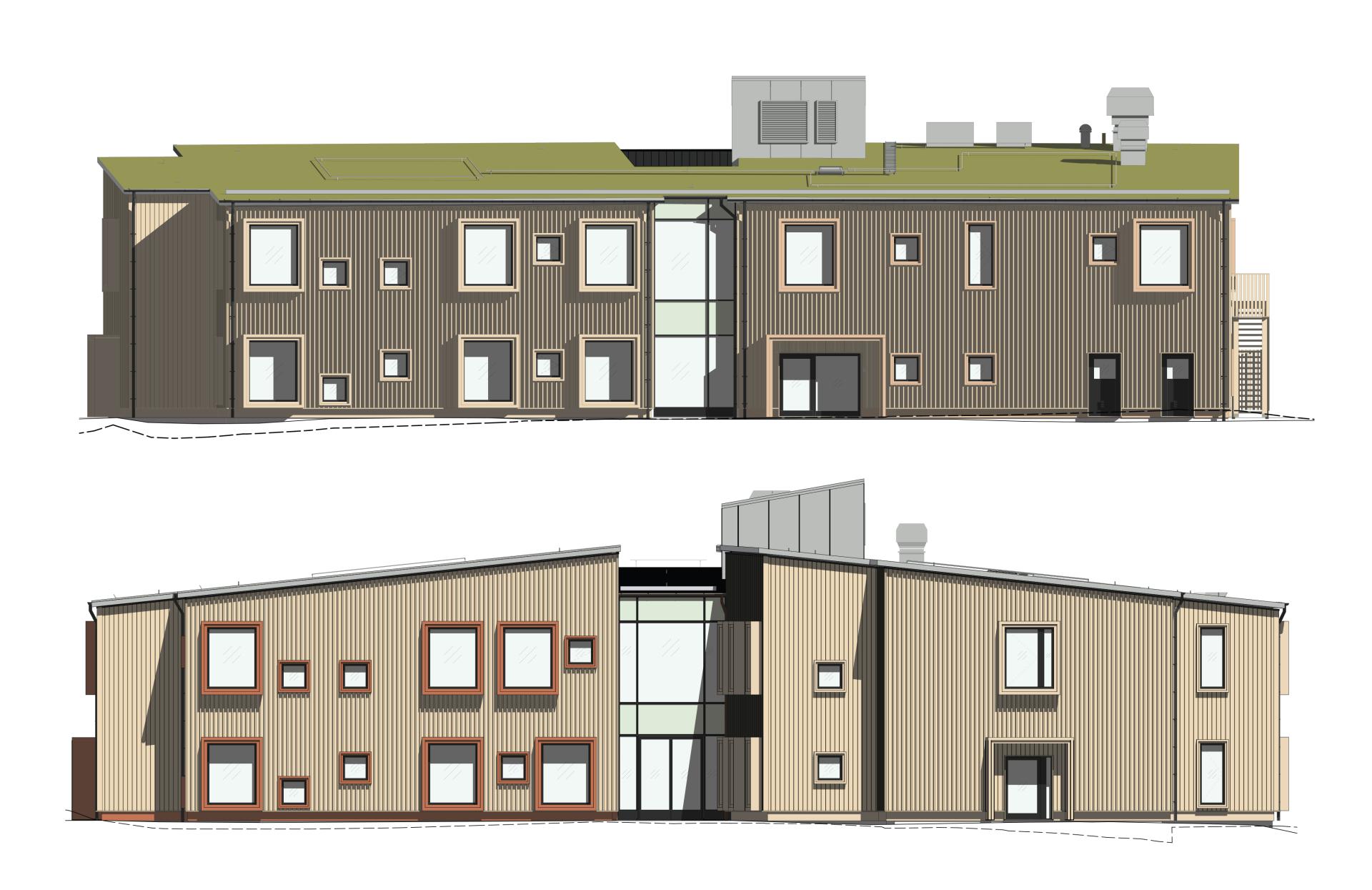 Secondly, to preserve the site’s natural beauty it was important to aesthetically match Hoppet to its built surroundings. Backaskolan, one of the city’s oldest schools built in 1910, was already located at the site. The idea was for Hoppet to build upon this cultural heritage, while using modern construction techniques.