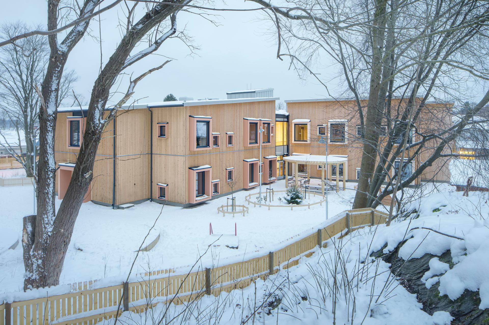 By reducing its CO2 emissions by 60% compared to current standard methods, Swedish pre-school Hoppet challenges the construction industry to raise its standards for sustainability. The fossil-free ideals, enshrined in its construction process, are included in the pedagogical mission of the pre-school to encourage children to learn how to reduce their own carbon footprint. In this way, Hoppet seeks to instil values of sustainability early on in childhood education.