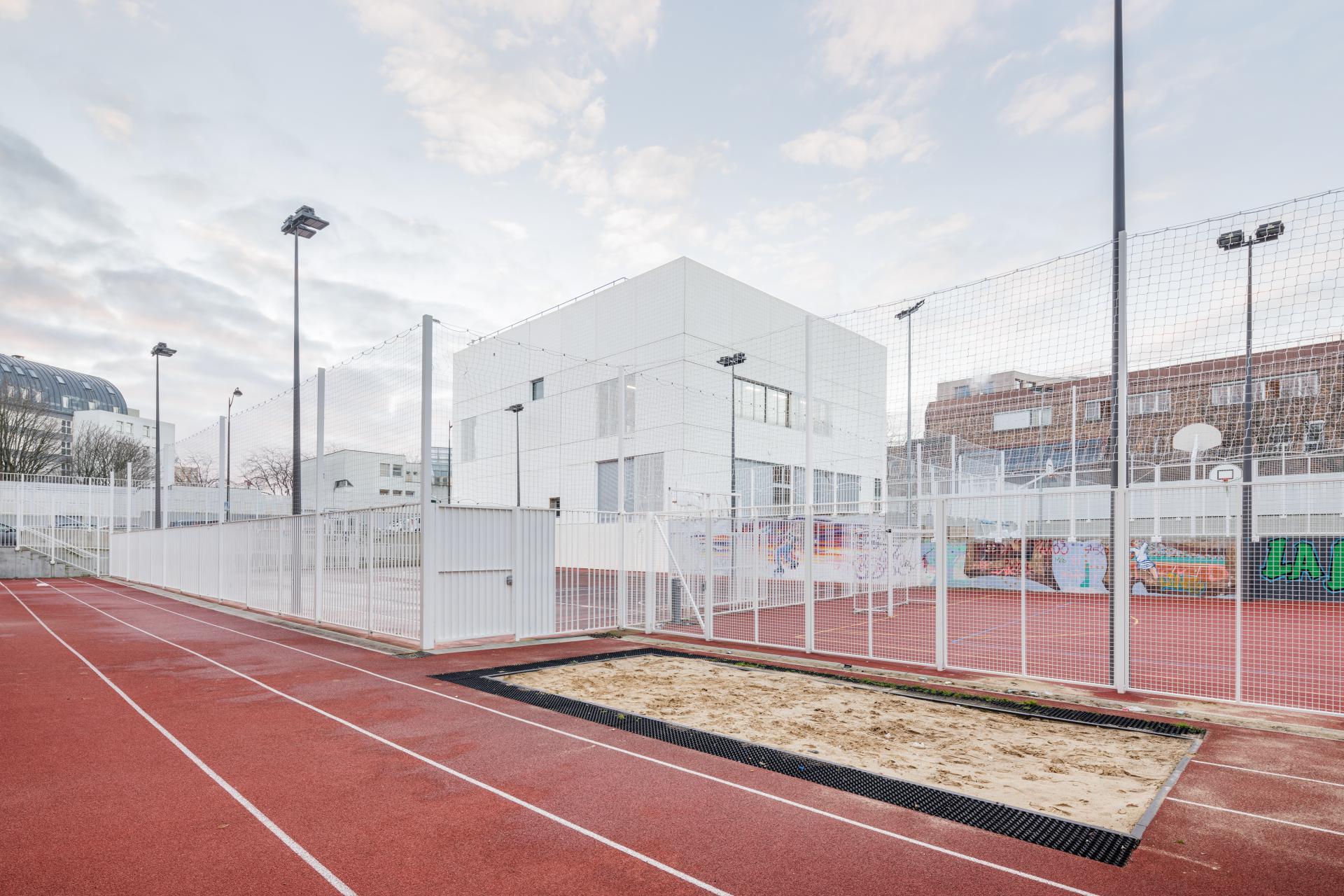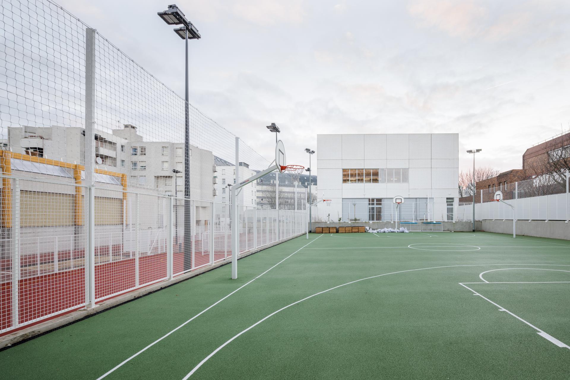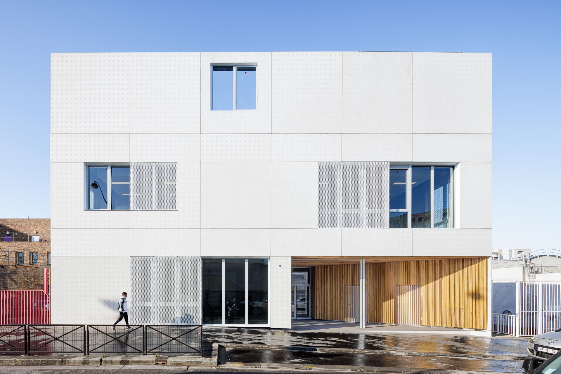 The new Hébert activity center is characterized by the homogeneous, meticulous and attentive treatment of all the facades, including in the heart of the block. Visible from the des Fillettes street, the west facade is planted to guarantee ecological continuity between the planted outdoor space and the garden roof. Supports are fixed in certain openings in order to mesh the cables on which the climbing plants are coiled. On the roof, the educational garden has been designed as a space for vegetable cultivation and more generally as a space for the cultivation of the earth and knowledge of living organisms which thus form an ecosystem harmoniously controlled by Man while respecting biodiversity. The new “Hébert kub” center is in this image where everyone participates in their own way, with these differences, these riches, these aspirations to the animation of a shared living space.