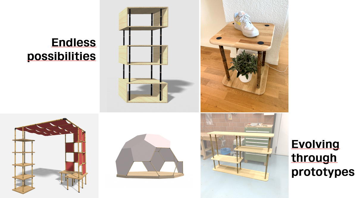 So far, we have worked on prototypes and we have discussed with many experts in the different fields related to the project to evaluate the best plan to realize our idea. We will start the commercialisation with a crowdfunding campaign in the spring 2022, during which we will offer three pieces of furniture in presale. The objective is to validate the attractiveness of our products. If this first step is conclusive, we will develop our Bameo furniture brand further. Then, we will continue the R&D on the system, for larger scale applications, such as temporary event structures, scaffolding or emergency structure.