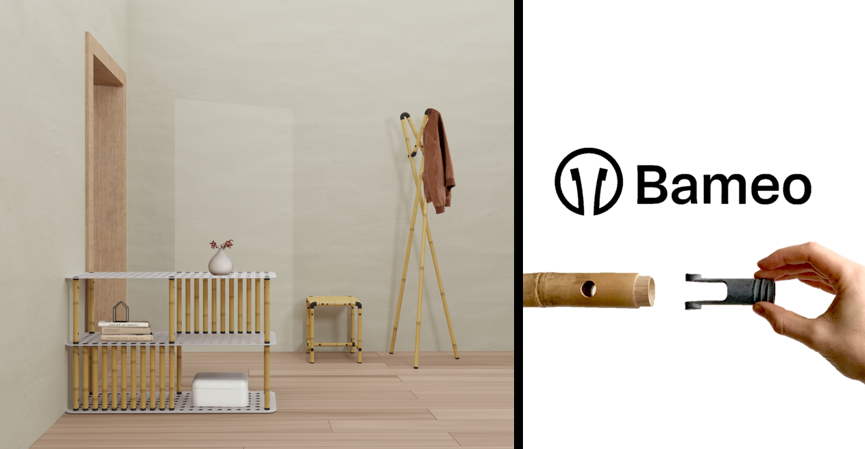 Bameo develops and will soon market modular furniture made of bamboo stems. Our goal is to help move towards a greener economy, by increasing the use of bamboo in Europe. For that, we developed an innovative connection system to modernize people's perception of bamboo and facilitate its structural use. We collaborate with designers who use our system to create unique furniture.