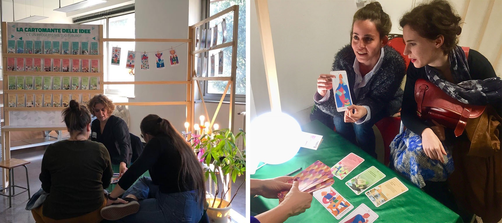 The co-design activities benefited from the design of micro-exhibition sets, and the digital and physical artefacts had the goal of generating high quality convivial experiences: the design of the scouting activities (i.e the “Ideas’ Festival”, the exhibition of the “Belle Storie” and the “Fortune Teller” card set), the educational formats (supported by edited video-pills and ad-hoc tools), the communication activities (such as the “Live from the Neighbourhoods” and the story-telling videos of the participating ideas).
