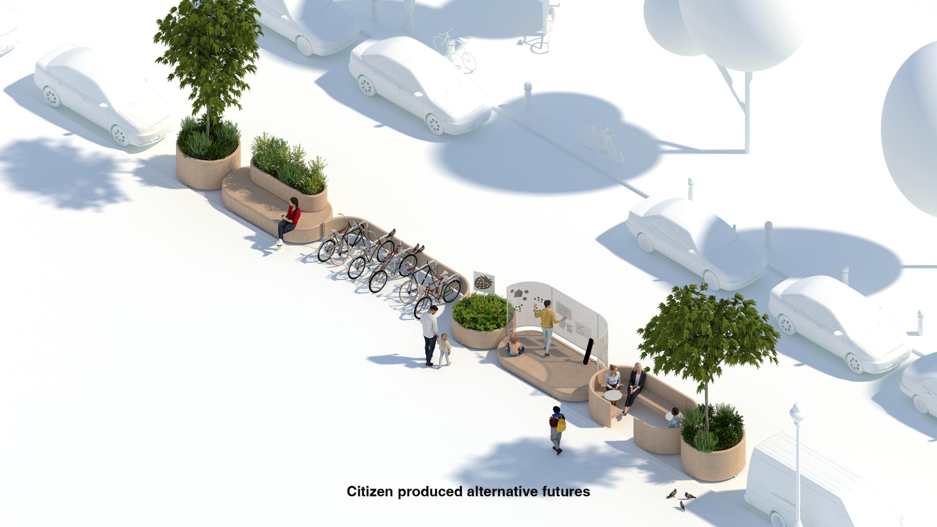 Each parking spots of the city is being allocated a program forming an alternative reality that people can grasp and be inspired to claim ownership. It is an invitation for citizens to take part in the shaping of their own street. No one else than the people directly living in that environment knows how the place feels across days and seasons, what they are lacking to thrive locally without requiring moving across entire neighborhoods. The community becomes an integrative part of the shaping of its own environment, and the public space, once its fate siloed in the hands of the institutions, becomes a projection of themselves.
