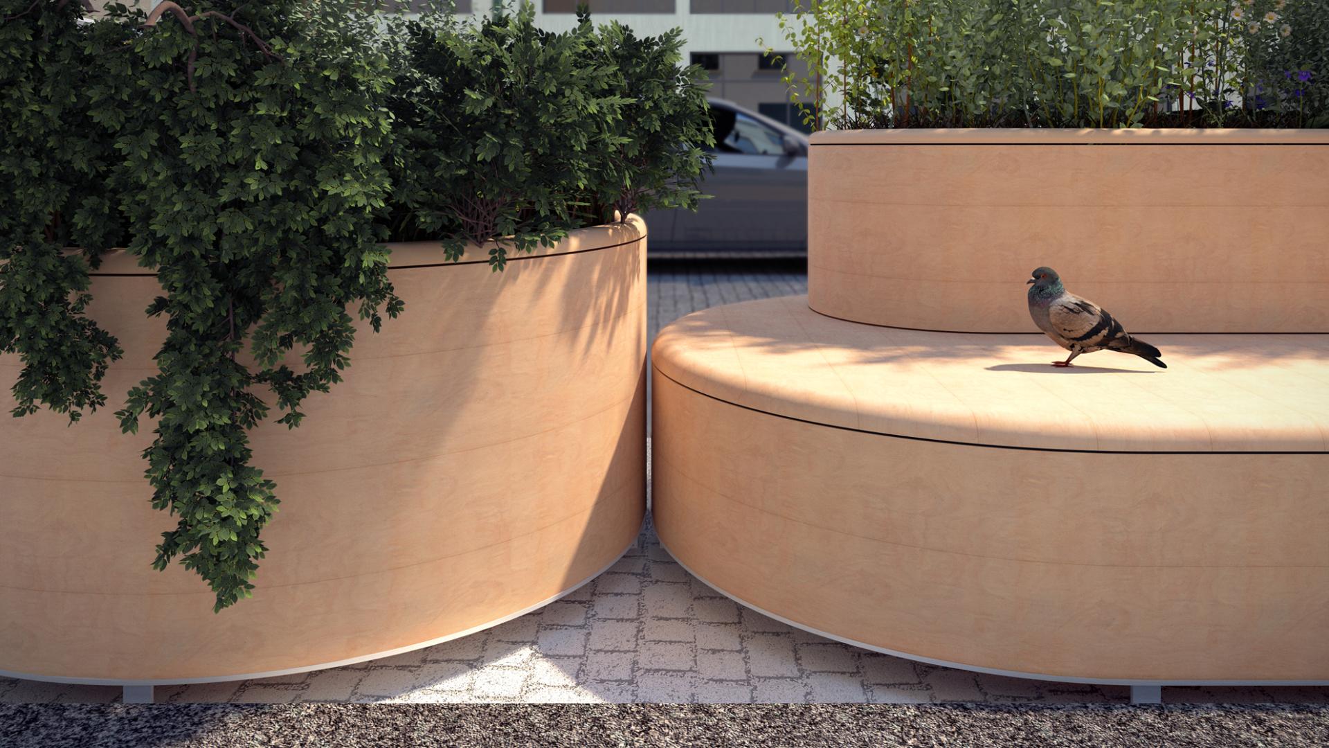 On time continuum, the modules are a first temporary intervention in the public space. They serve as a testbed for long-lasting interventions in the streetscape. The built modules are designed to be durable and transportable, pollinizing the city across time and space, sustainable in its composition and deployment.