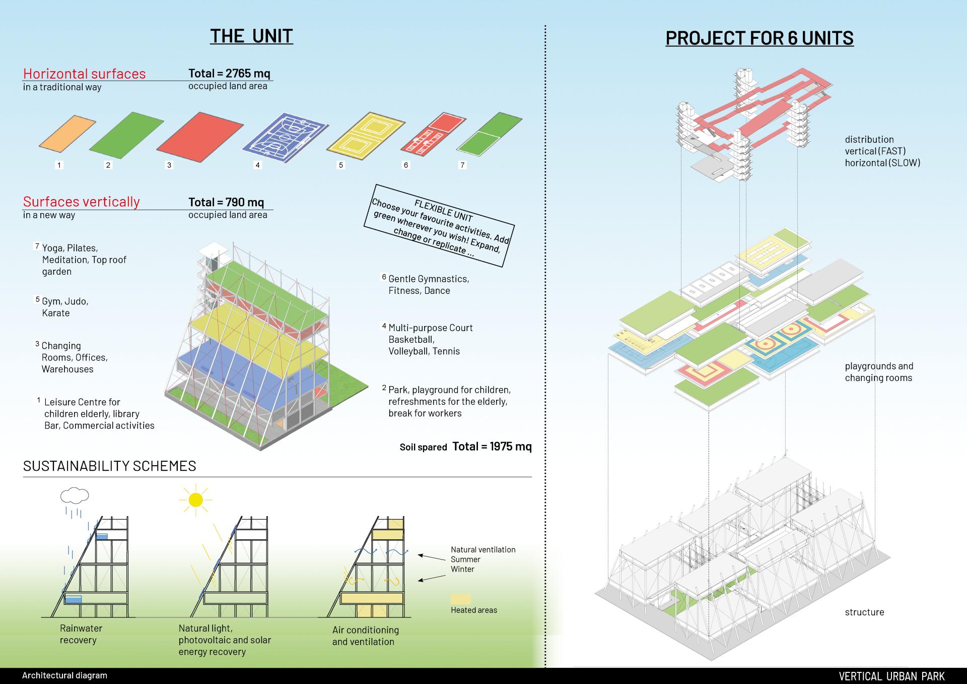 Once upon a time there was the little city park where children played, teenagers met and the elderly played cards... Today there are few possibilities of meeting in the city, so I propose you a new place of aggregation, meeting, fun and physical activity, with the opportunity of interaction and exchange of experiences between the various generations, in a single vertical structure.