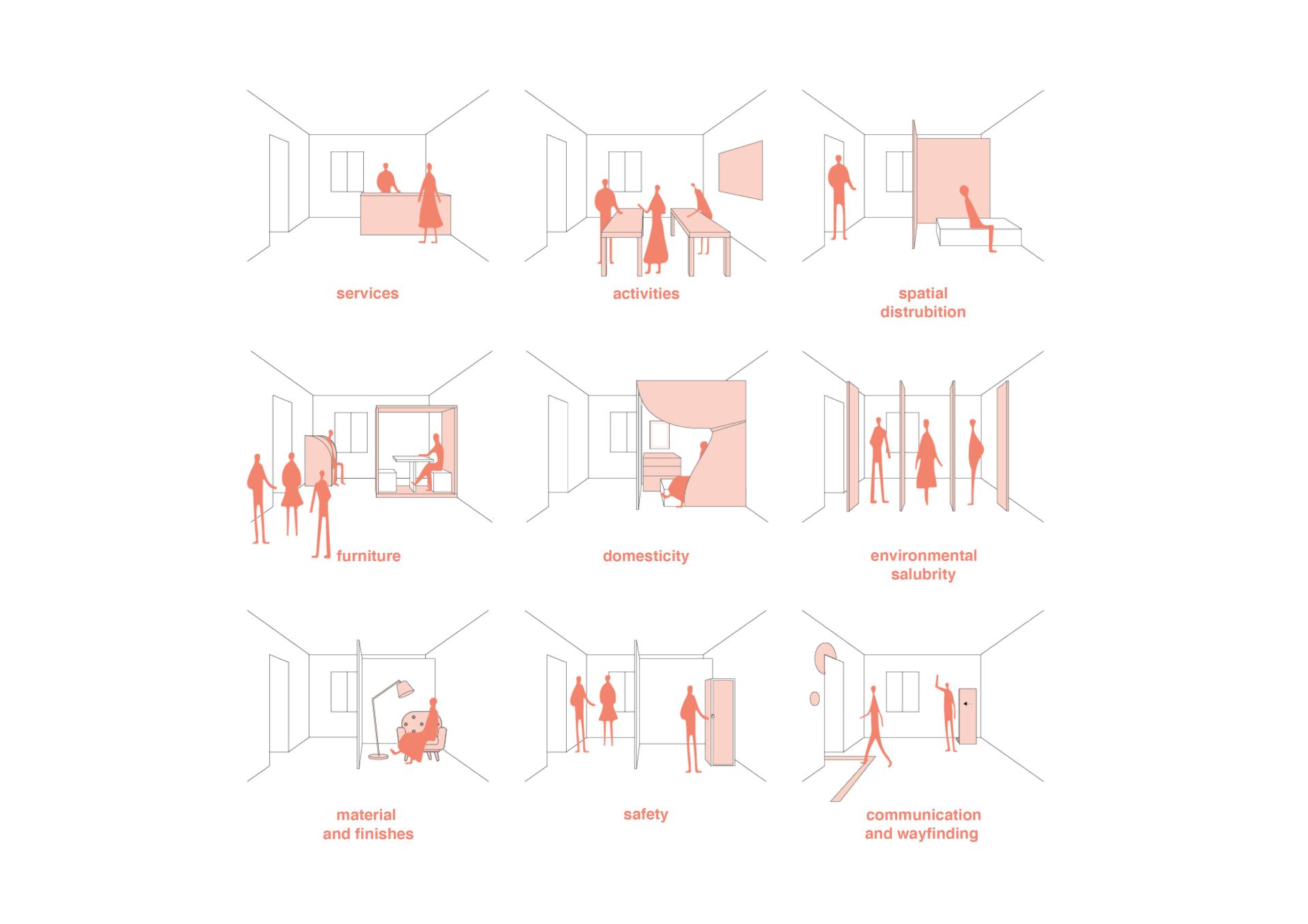Domesticity, which is measured by the opportunity of guests to directly and autonomously intervene in the space, draws attention to the need to provide the guest with the opportunity to create an environment in which he or she can identify him or herself. E.g through lighting and space customization referring not only to practical but also emotional needs.