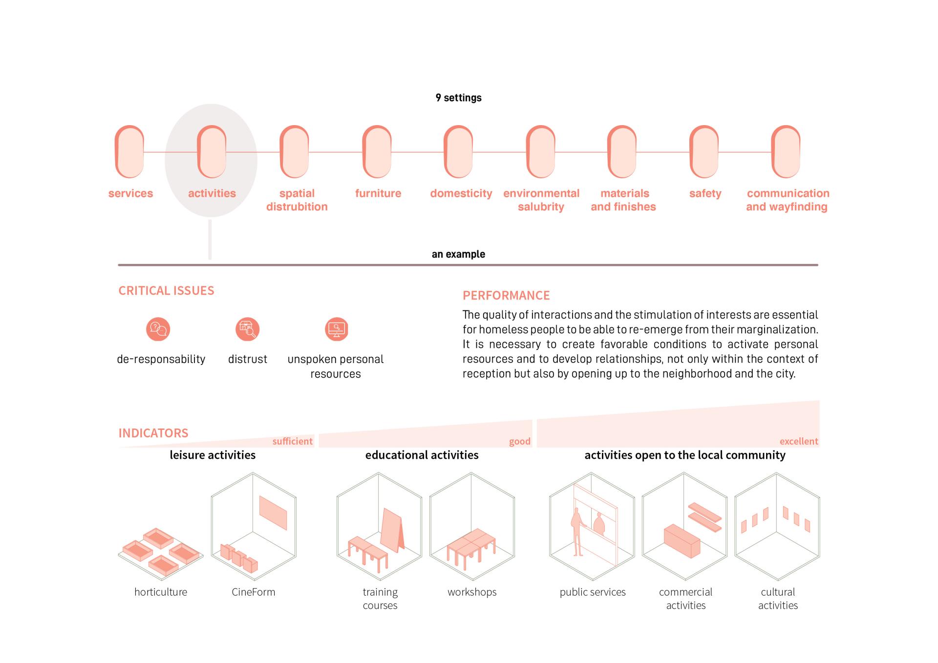 The role of design is to reinterpret the goals and the actions useful to ensure a new way of living and a new way of being, combining spatial design with service design. The intended outcomes are a wider adoption of the proposed methodology, resulting in an increase quality of receptive structures.