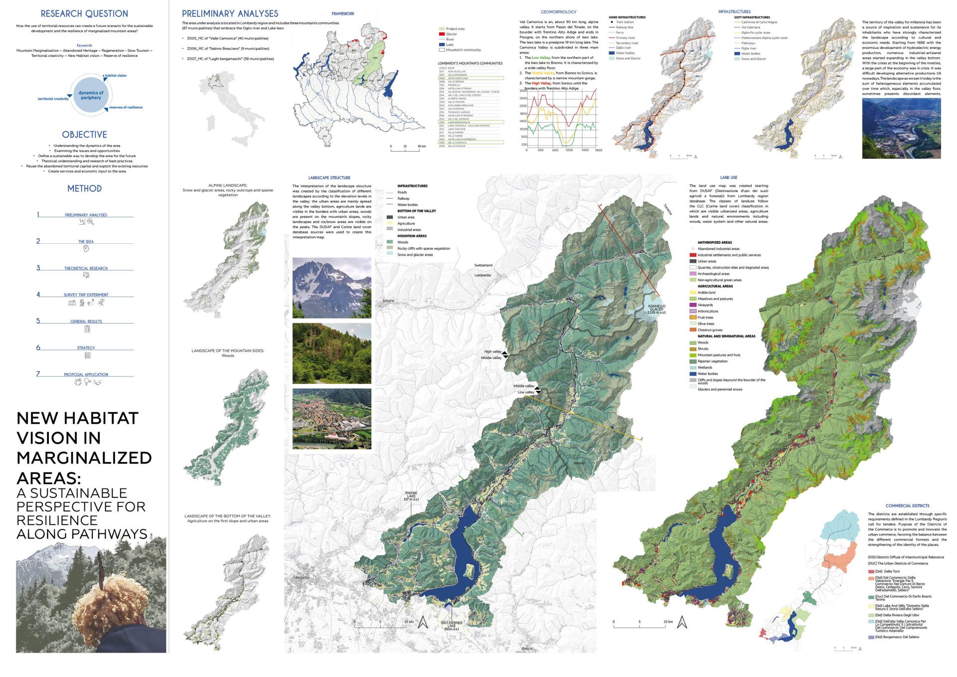 The industrial history of the valley has shaped the territory over the centuries. Nowadays the industrial sector hasn’t the necessary characteristics to be the driving sector of the economy, it is also not in line with the vision of sustainable development of the territory and a large part of the factories is now abandoned. At the same time, the area has a lack of services and the presence of many other abandoned structures as a result of the ongoing depopulation trend. On the other hand, there are some interesting soft mobility infrastructures and the touristic vocation represents the key to the future development of the valley. The cycle path “Oglio-Po” and two pathways recently developed in “cammini” run along the valley covering a length of about 140 km that can be traveled by foot or bicycle in daily stages. In addition, the Brescia-Edolo railway connects the valley with the Padana flatland. The concept will be based on sustainability contributing a topical response to the current climatic crisis. The new economic answer for the area is the creation of hubs of services for travelers and the local population transforming the abandoned heritage along the paths. The system of regenerated buildings will provide an opportunity to enhance the paths, through the creation of new slow tourism-friendly hospitality services and at the same time create meeting spaces for local communities and new job opportunities. Moreover, synergic projects and associations already working on abandoned heritage transformation and the transmission of local identity, represent an ongoing action for urban revival that can be linked to the concept. The proposal will create interactions among the crossed small municipalities, a better distribution of tourism along the valley, and will increase the degree of utilization of the often-forgotten territorial capital, also increasing the well-being of the local population, by creating economic demand and inverting the depopulation trend.