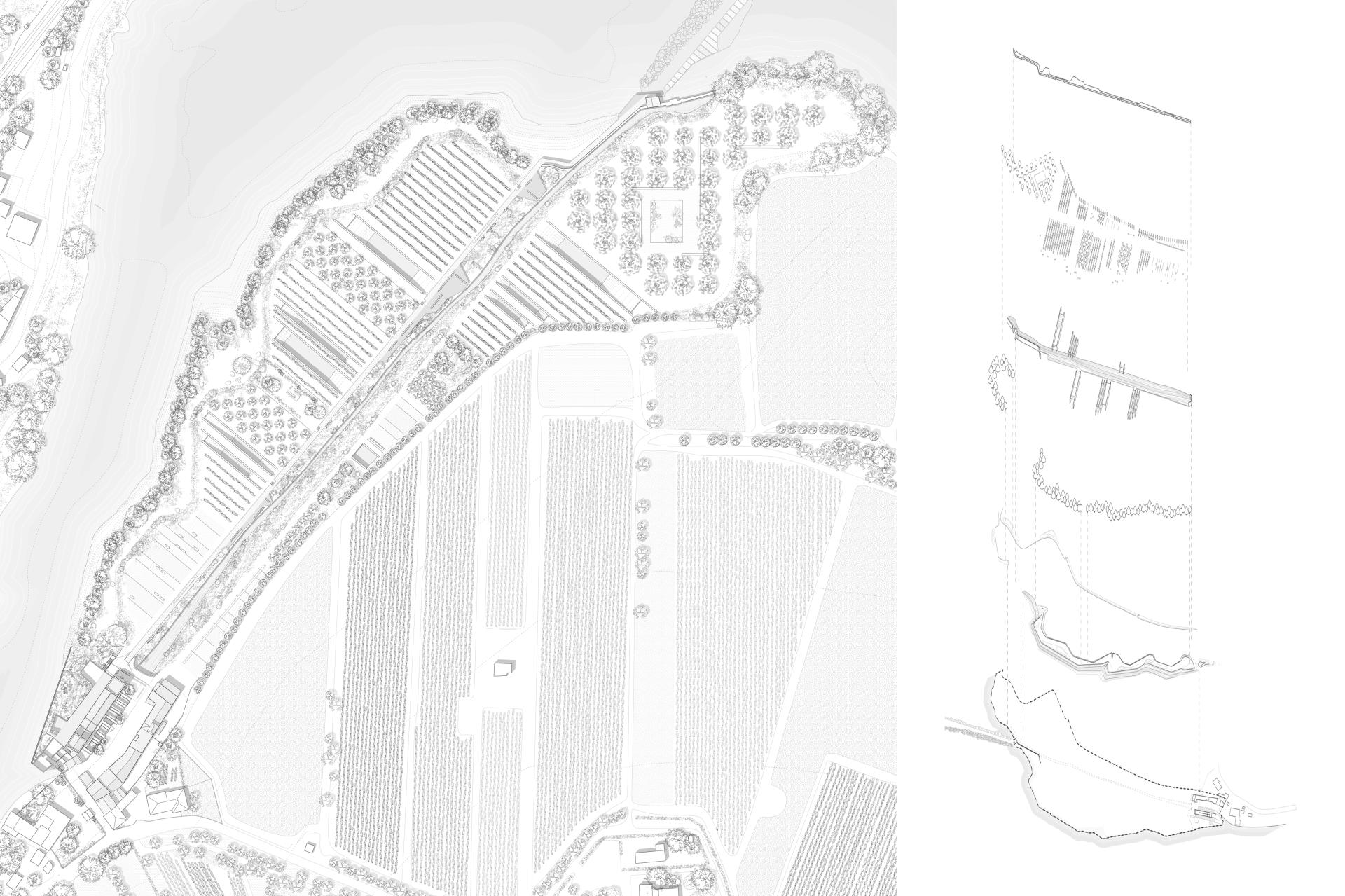 The richness of the design project is derived thanks to the apparent contradiction that flows between the systematic design of places and their aesthetic, and sensitive, experience. The possibility of understanding the landscape and its modification as an architectural work, inextricably links the formal outcomes related to the context in which they are inserted, generating quality and spatial uniqueness. In the gora’s specific case, it is possible to re-read the architectural articulation of the entire system. Firstly, this is done with a final re-reading of the path and, secondly with the structuring of an agricultural landscape that stands as an element able to scan and articulate the void.