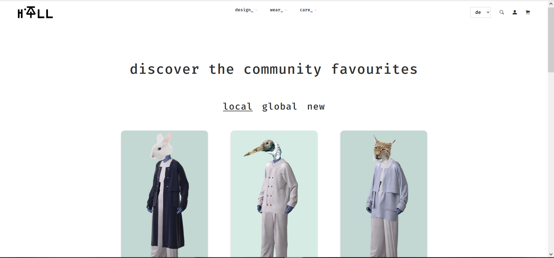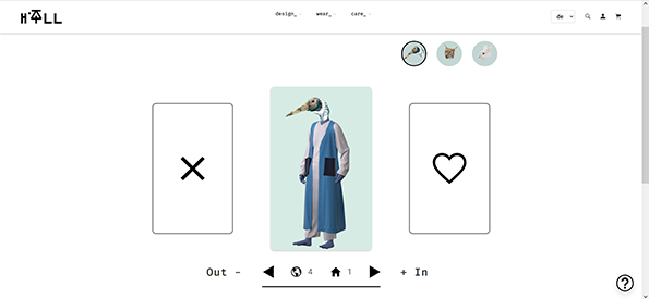 Our first simple take on participation is an online card game we developed: highest ranked items are released for production on demand. If you set up an anonymous account with your postcode, your votes will be counted and assigned to your region. This way, location-specific preferences can be discovered. At regular intervals, the top 3 are pushed into the shop. There you can either buy your favourite item or, even better, select it for temporary use. The showcase displays the top ranked styles regionally and globally. Here you can also view latest additions to the game.