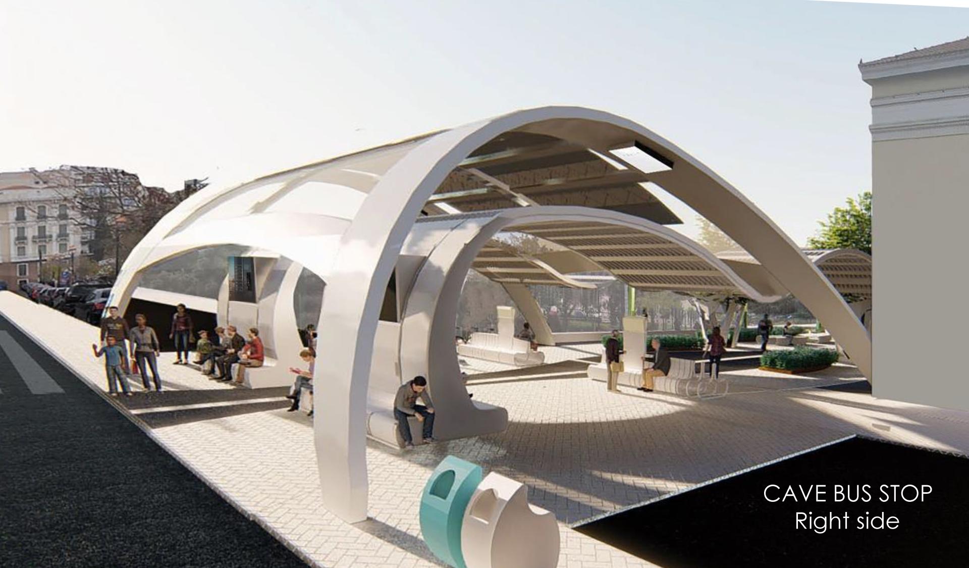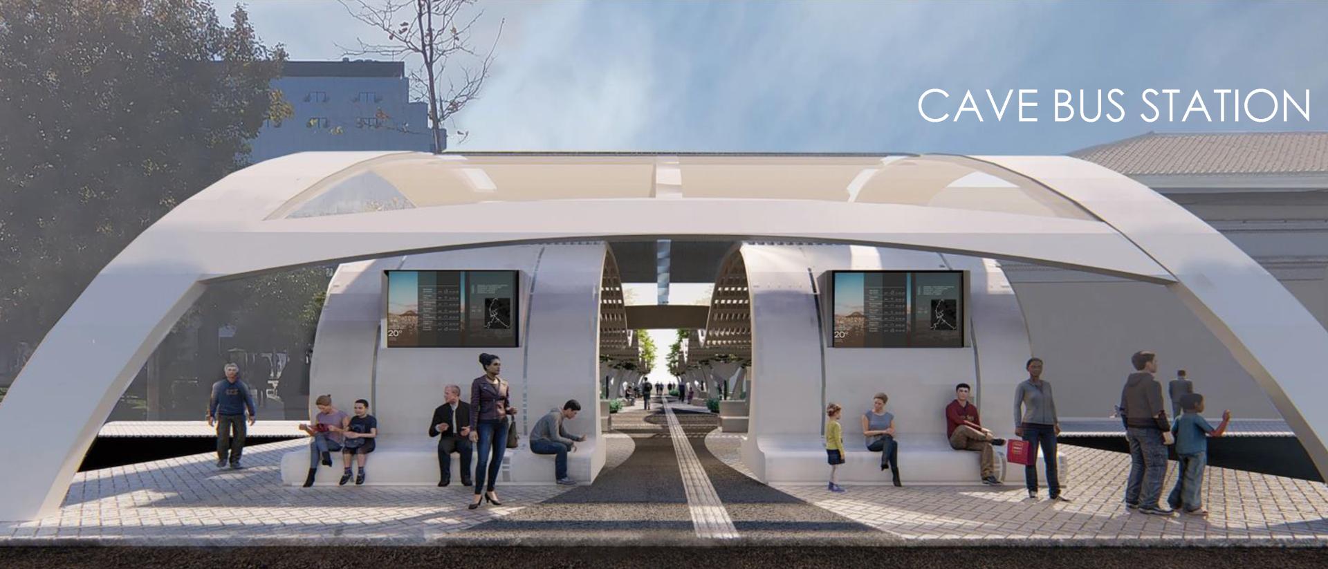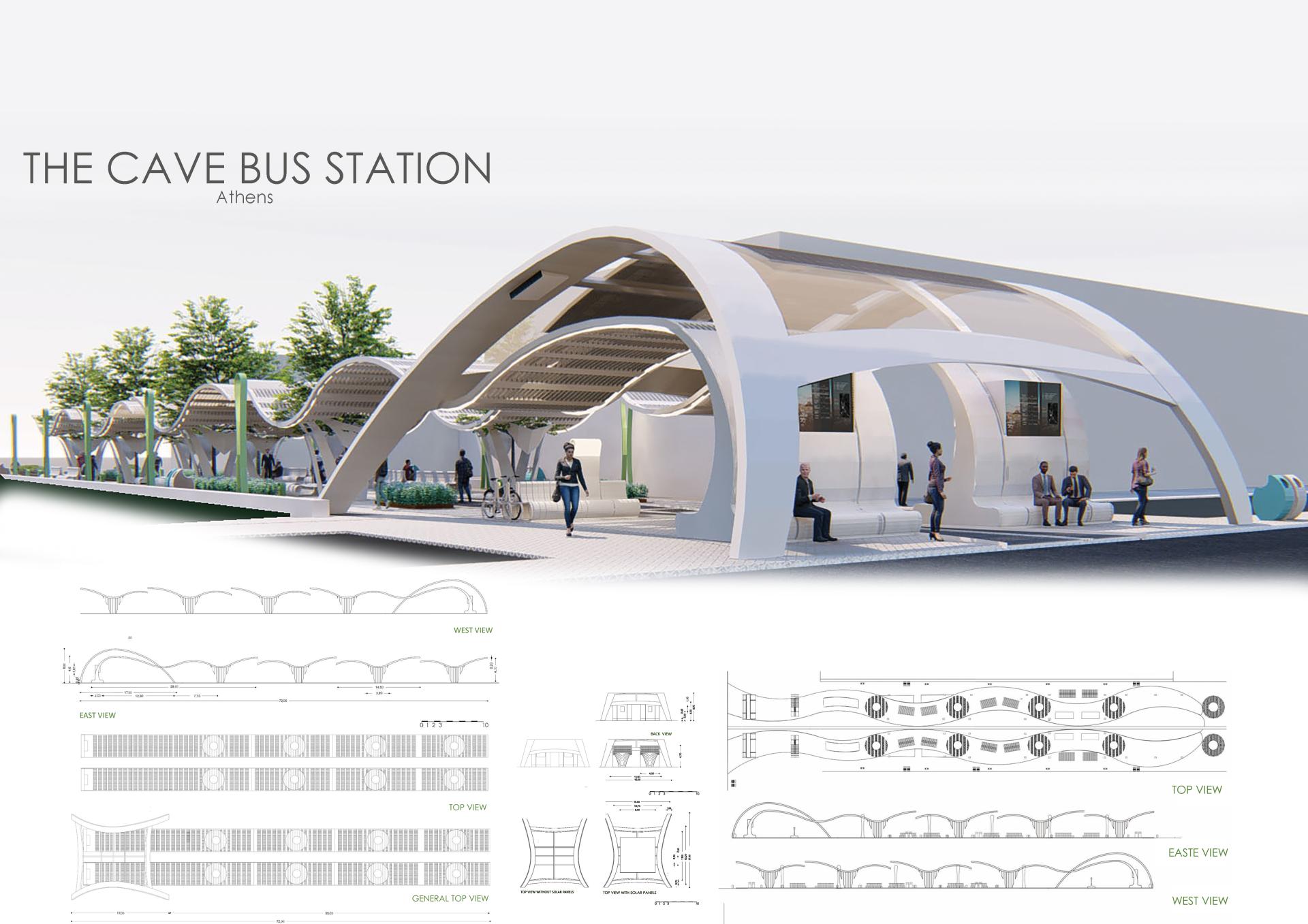 Urban space today seems to be for the most people a hostile space. Everyday life is an odyssey of survival of the inhabitants who live and work in urban areas, in nightmarish cities, in cities that kill people, in cities that are hostile, dangerous and unhealthy. The daily commuting from the living space to other places is getting bigger and bigger. When this movement is forced through amorphous or hostile spaces, the person is psychologically affected and resorts to indifference, depression and loss of inspiration and motivation. The organization of space expresses and influences social relations. The humanization of space can only be done through social collective action and the humanization of man. Man has the ability to create space, to face those forces that make the city a foreign environment is to be human. By drawing inspiration from the first space that the early humans felt safety and contentment, the cave, this design for the bus station was devised to serve as a safe place for commuters and pedestrians of the city. Providing protection from the elements and giving the public space human character the station serves as a beacon of hope as a creation that prioritizes the feelings and the essence of being human, in accordance to the environment, and the self sufficiency that are required in our time.