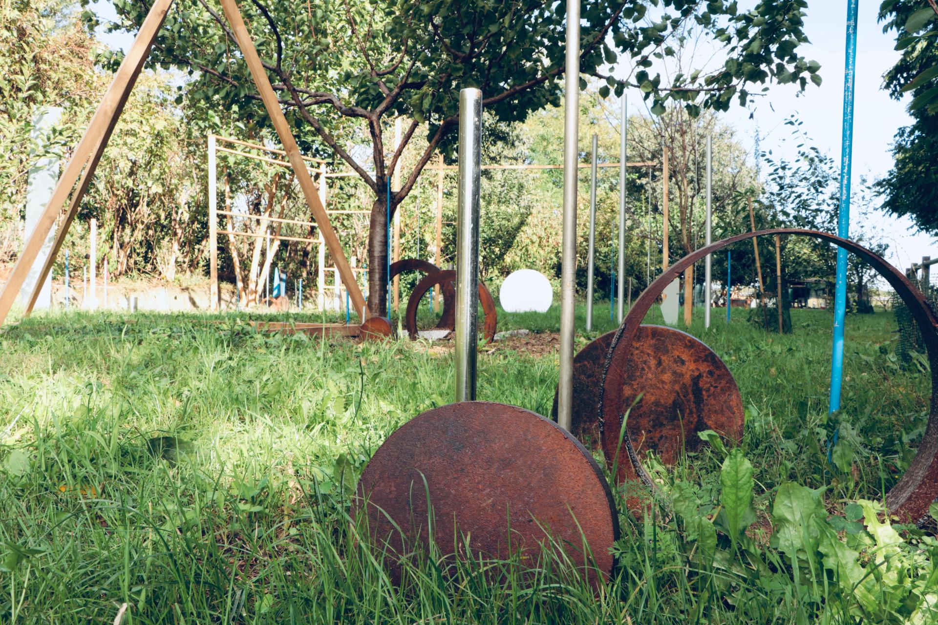 Camilla Alberti tells her story with an immersive installation designed to be observed and crossed. Modular structures of the installation remind organic and inclusive architecture of plants, where there is no inside and outside but a habitat inserted within the becoming. The installation’s extraordinary aspect is that every object and material is not limited to the artist’s will who disposes of them but is perpetuated and modified, affecting other living species such as mold, animals, or plants. "Midsummer fires" becomes a functional space, without limits and borders, where different construction methods are explored to transform our lives and inhabit the world. Every element of the installation has been recovered from landfills, scraps of factories, and then reassembled by the artist to demonstrate the importance of ruin as a manifestation of the new and not only destruction of the old. Remaining on the theme of cohesion, Camilla Alberti interfaces with the land of Cascinet's vegetable gardens. In the installation Midsummer fires she places a series of objects discarded by the human world: they are production rubble harmoniously inserted in the landscape. The aim is to trigger cohesion mechanisms between the objects and the surrounding ecosystems in a non-invasive way: insects and plants interact with the structure, modifying its structure.