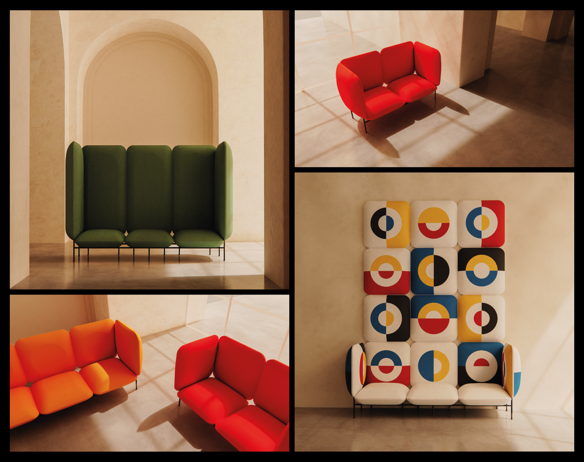 The pieces reanimate a long-forgotten visual language and evoke the spirit of Hungarian art in the 1970s. Each piece has the potential to honor its environment and act as a visual statement with a playful and bright tone.