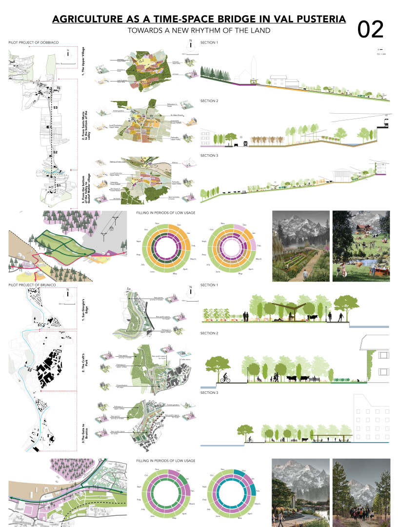 In this work it is proposed to imagine the territory from agriculture as the starting point, as the bridge to change the current rhythm of Val Pusteria so, how can the territory be shaped through agriculture?