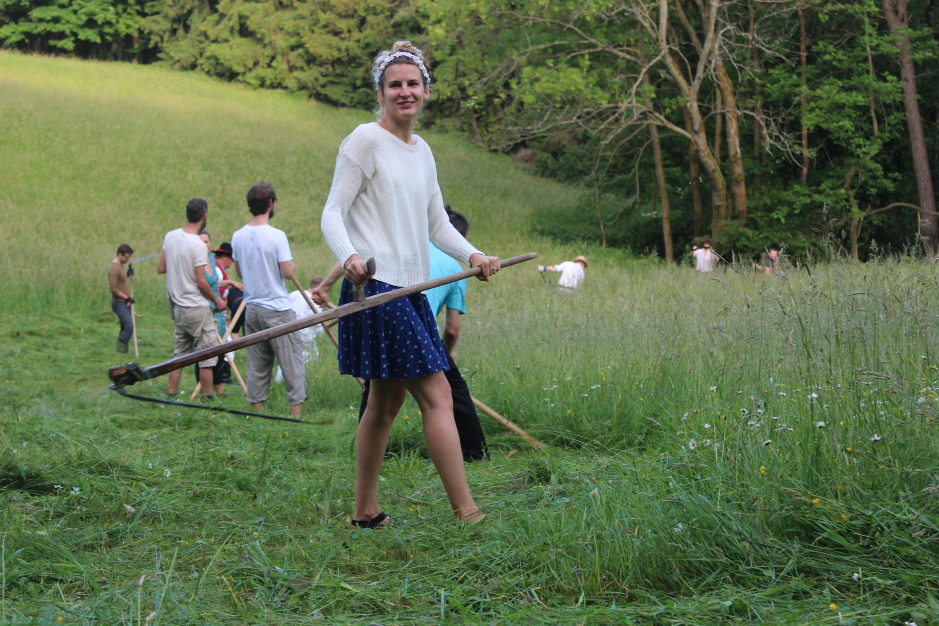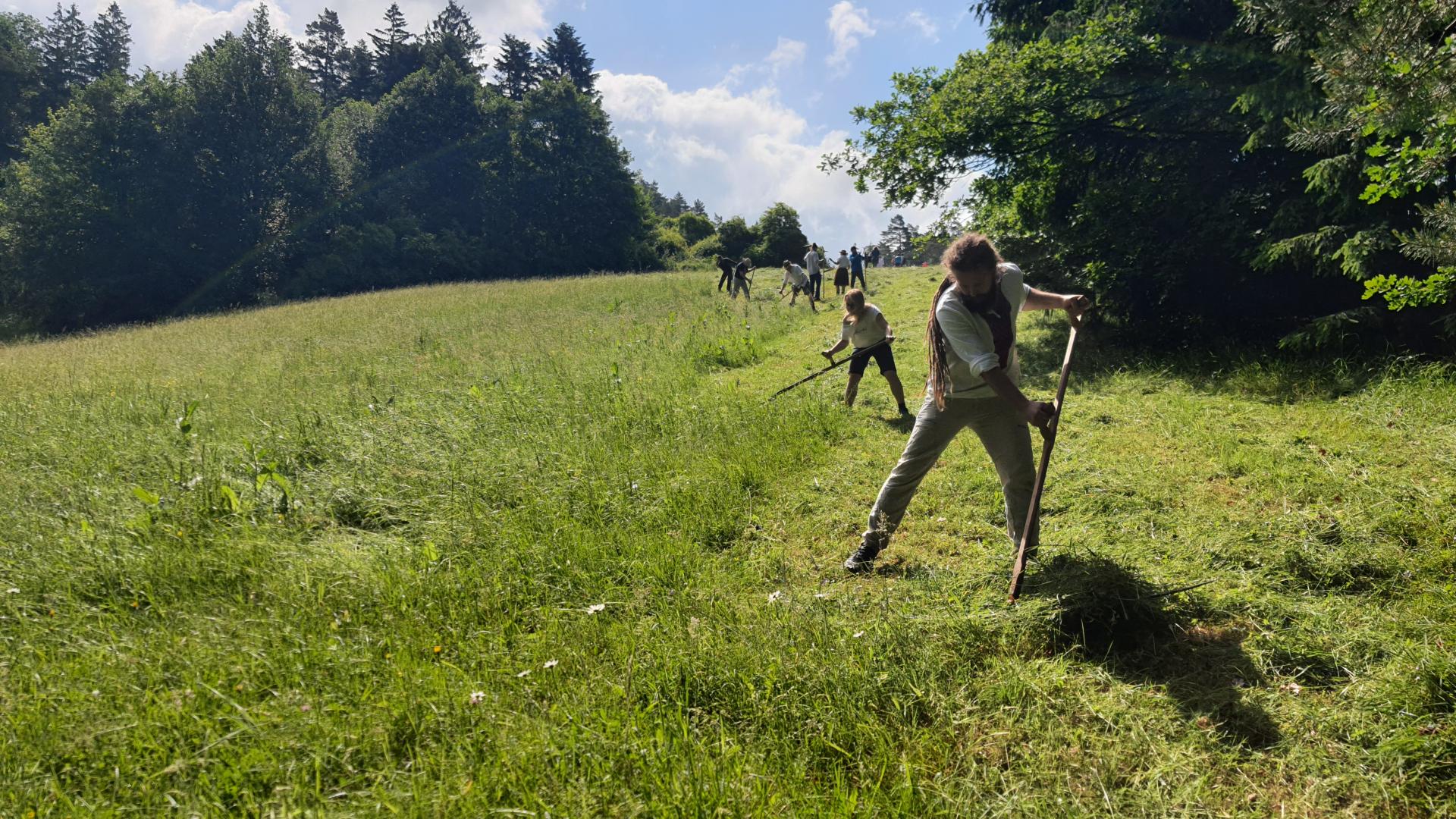 In our project, we focus primarily on sustainability through community activities. In the community meadow mowing project, we organized a cultural community event to support the species diversity of local meadows. Species diversity of meadows is achieved by manual mowing, which is gentle on the plant cycle, it is also important timing that the plants, for example, have space to sow. This method of meadow care has been used traditionally and in the region. During communism, however, there was centralization and industrialization, which did not take into account species-rare localities. The traditional way of caring for meadows is remembered by the oldest generation. Local seniors were very excited to share their experience with hand-mowing, an activity that requires a series of difficult procedures. The event was open to the general public and to our delight, people from completely different backgrounds gathered here. The meadow was located at the border of three villages, so it connected the locals from these localities. The event was attended by folklore fans, parents with children from a nearby forest nursery, local seniors and students. Most of the participants did not know each other and it was a beautiful intergenerational sharing. The way the event was organized was also a sustainable component. Due to the outdoor nature of the event, we did not need facilities. We borrow the tools needed for mowing, partly from locals and partly from an environmental organization that focuses on mowing meadows. The selected locality is in the care of the local agricultural center, which allowed us to adjust this part manually. The hay that remained after the mowing was then used by the agricultural center for its needs, probably for feeding. The event was accompanied by music, some participants wore traditional costumes and participants were also invited to bring refreshments. The Velikovske caroling event was held in a similar spirit.