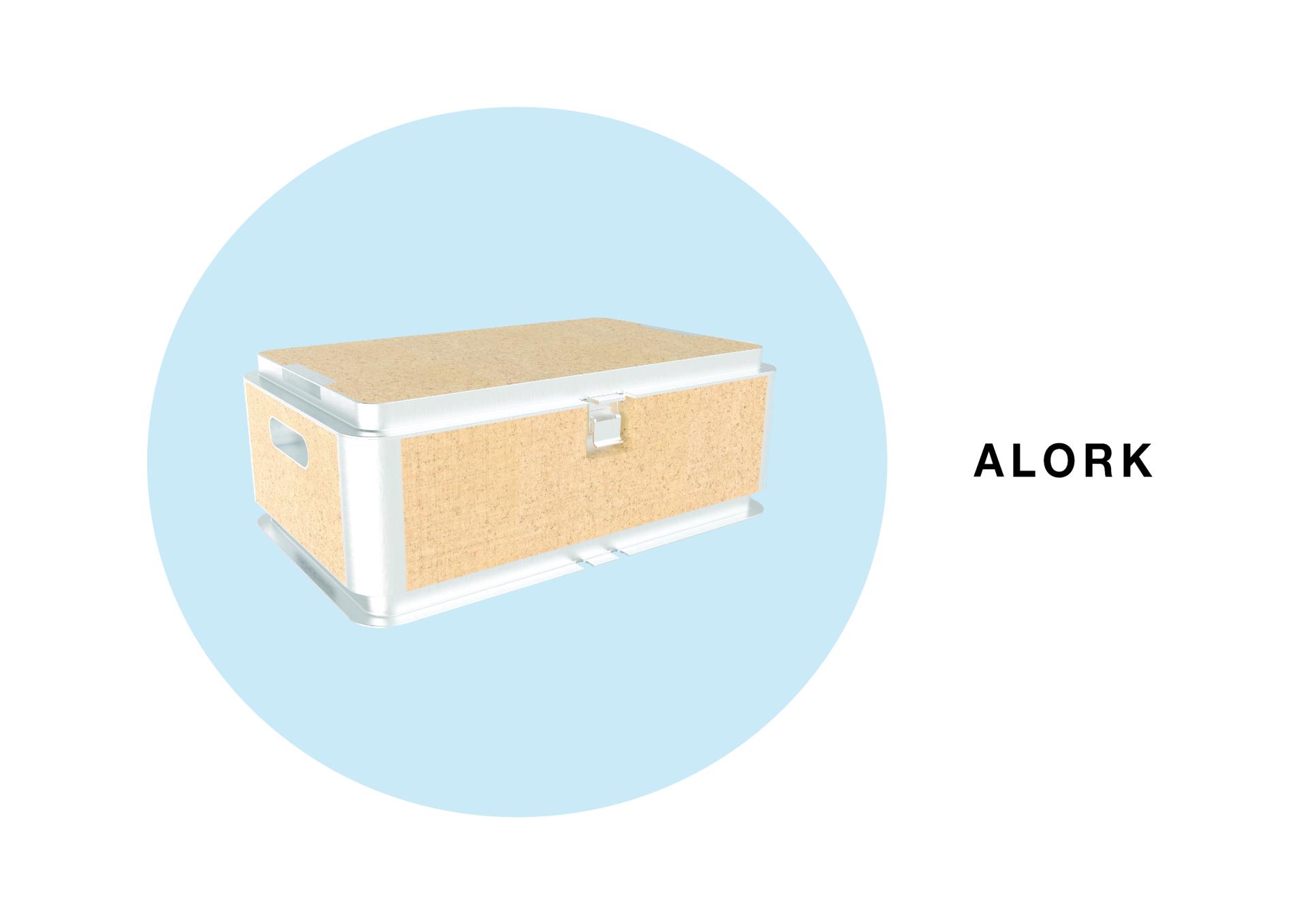 Alork is a box designed in aluminum and cork with the aim of eliminating from circulation the polystyrene containers currently used in the fishing industry. Alork is sustainable because unlike polystyrene boxes it is not disposable but can be reused indefinitely as it can be sterilized. Furthermore, once its life cycle has ended, aluminum and cork are easily recyclable. This project can be easily adapted to the food and pharmaceutical industry.