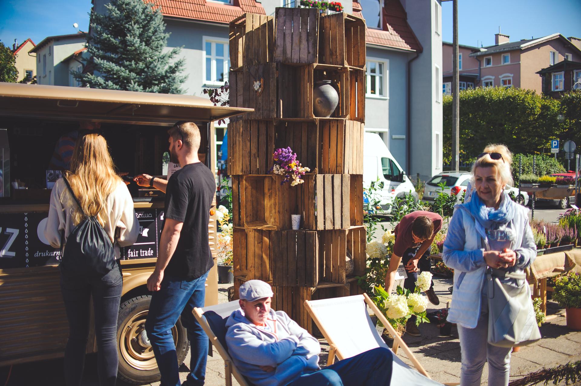 The project implementation is at the centre of sustainable development issues. The aim was to regenerate a deciling market with as little intervention from outisde as possible. The scope of hard investments covered builiding dump compartment and replacement of the damaged square floor with small rain gardens in it as well as wooden crates with vegetation blocking the access of cars. Replacing floor was an opportunity to change the non-optimal layout of the marketplace, which allowed efficient use of space. In addition, identifying elements such as a totem made by artists from the Academy of Fine Arts were placed on the site and a comprehensive change of the visual identification system was implemented.