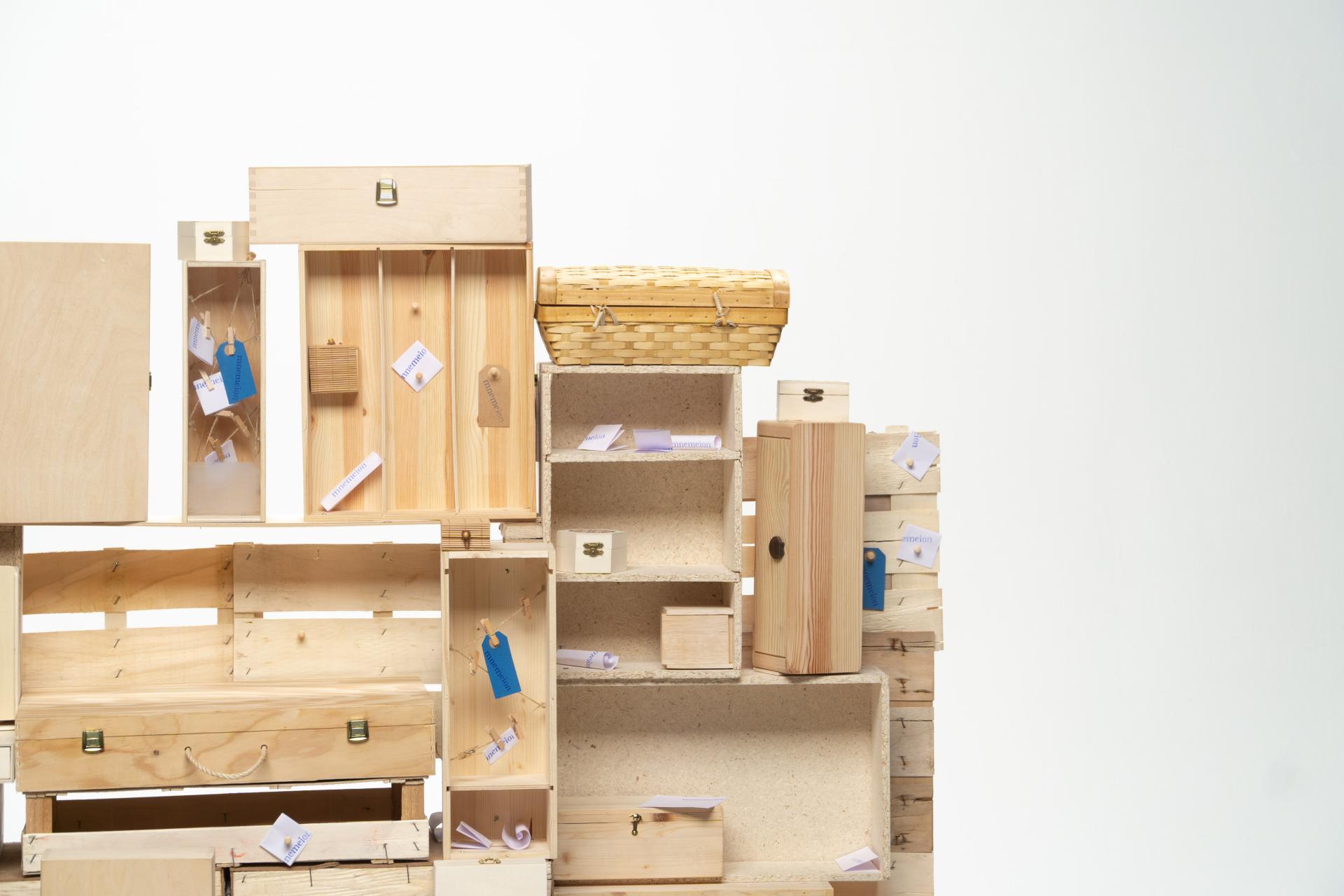 Mnemeion is an exploration of the possibility of human existence with a complete detachment from digital technology in a future world which is consumed by it. It is a sculptural expression that embodies the need to preserve and protect our thoughts, ideas and memories. Inspired by the movement of Arte Povera, the product re-purposes timber boxes as the fundamental building blocks of a speculative memory machine. The boxes, which differ in shape, size and material, store the hand-written artifacts of our diverse thoughts and memories. Thus, it is a monumental collage of our minds, unique to each of us. It doesn't have any defined form.