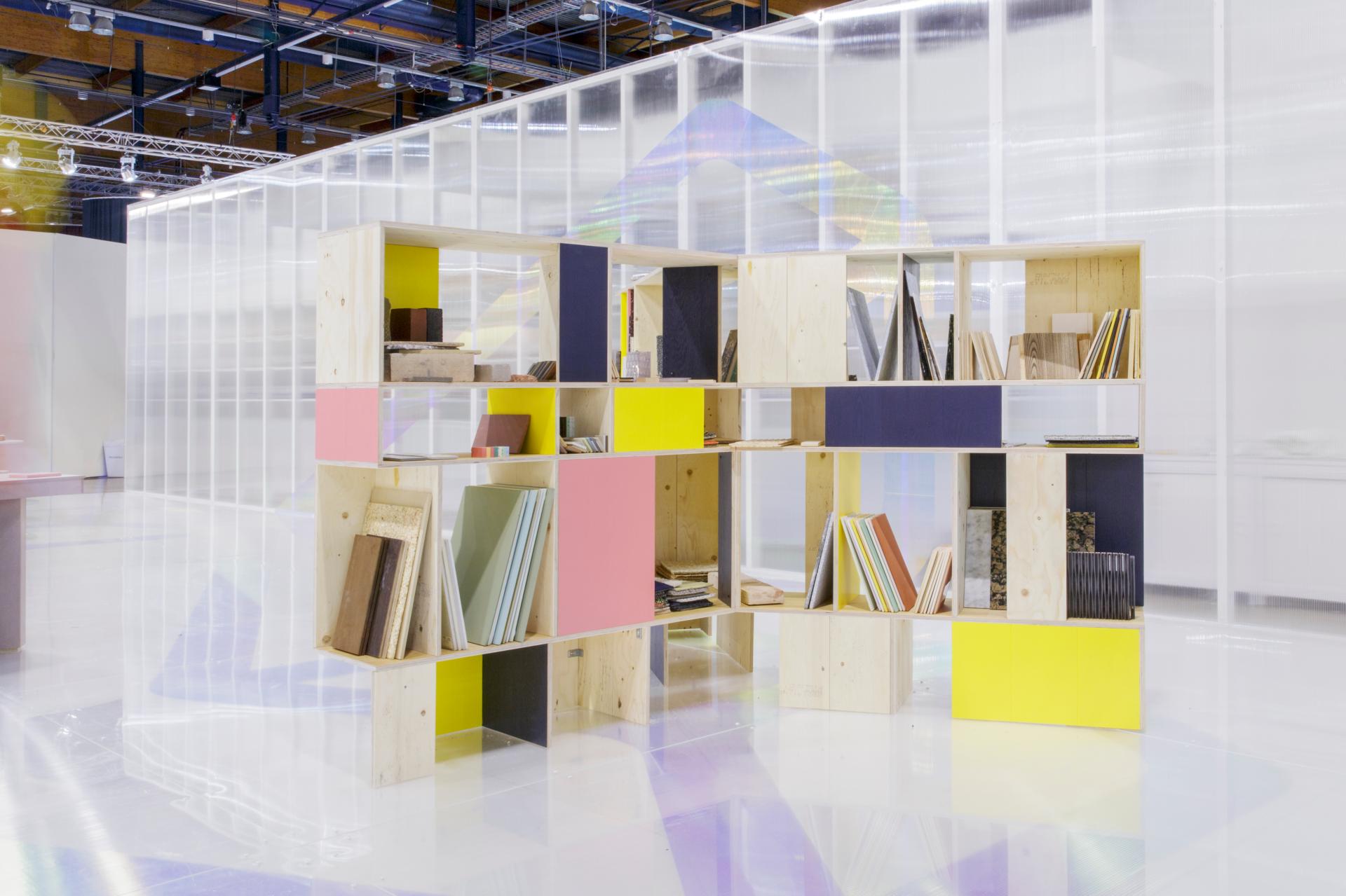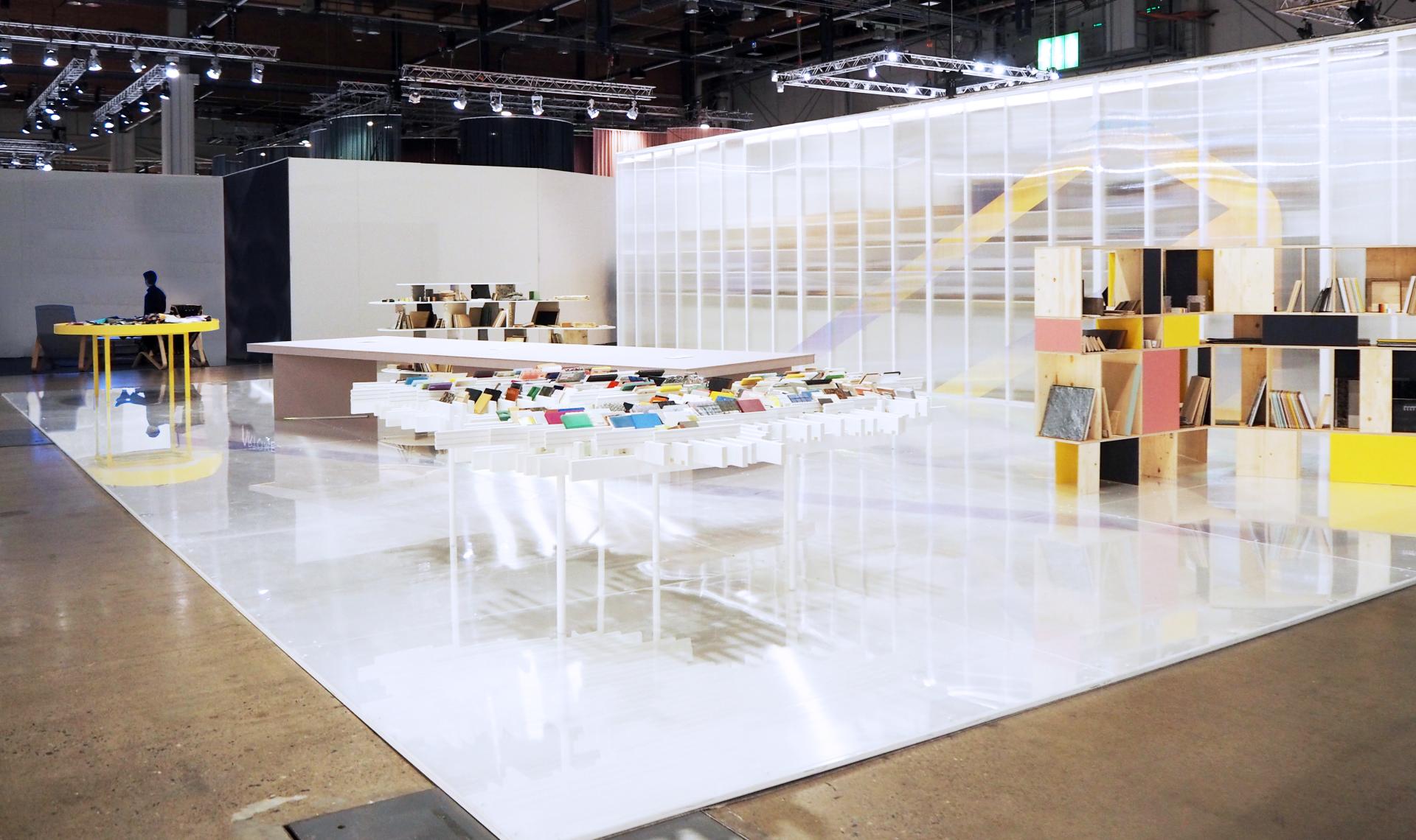 The fair environment is very stressfull and chaotic for the visitors. Every booth is trying to sell something and most of the information is purely marketing. Habitarematerials is not directly selling anything, but giving a space to explore and choose freely with all senses.