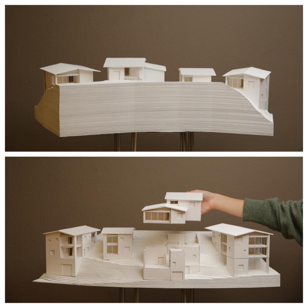 Architecture is a mediator between the self and the world, it is in this interval where architecture provides a framework to inhabit our environment. For this reason, vertical organisation systems in collective housing renounce the main quality of a rural environment: its direct relationship with the land. The steep slope becomes a virtue and mechanism of the project by guaranteeing direct access from the outside to all the homes through its articulation and small porticoed squares. It is in these protected outdoor spaces where the expression of its inhabitants as a community allows the construction and perpetuation of an identity defined in the context they inhabit.
