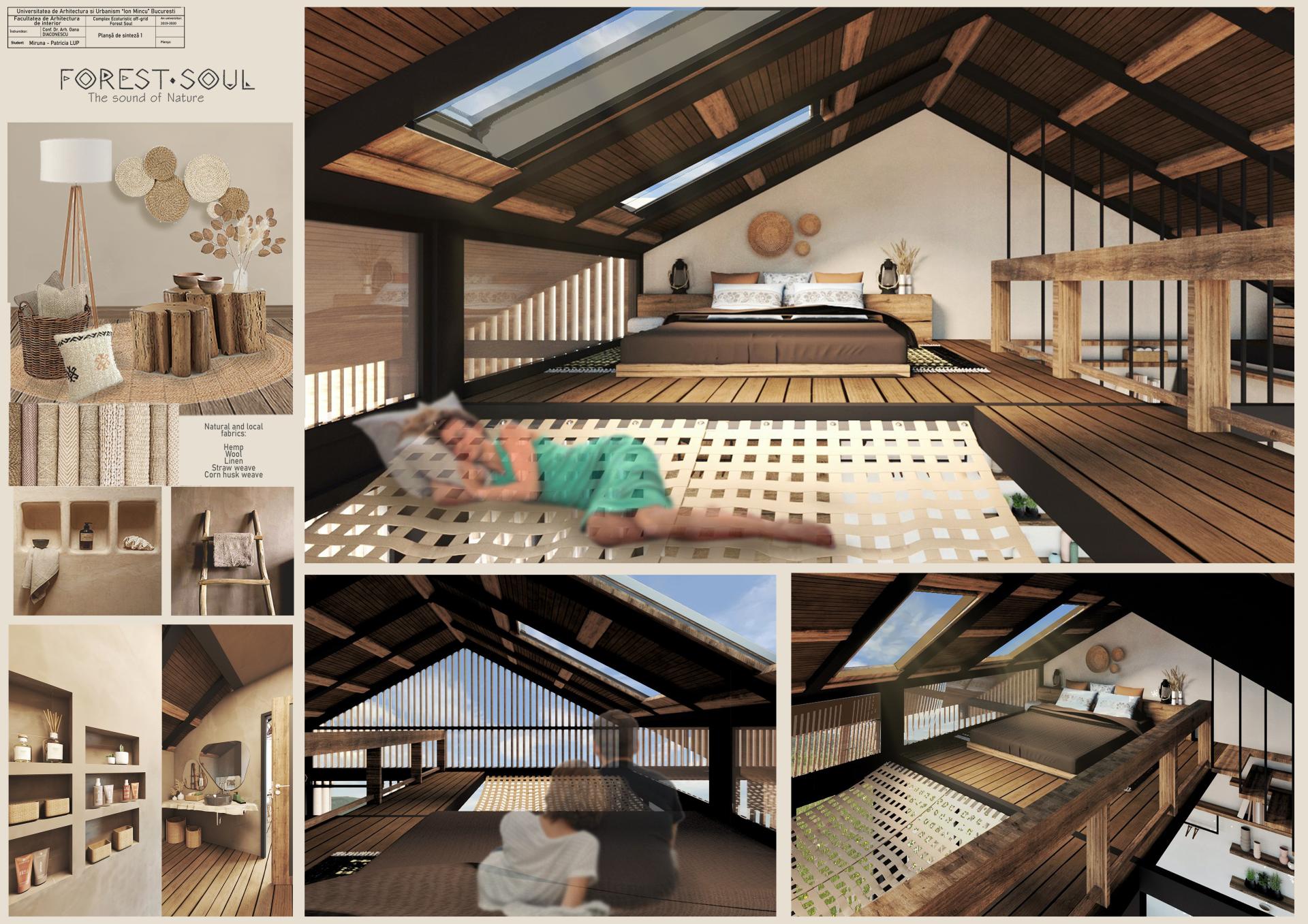 - FURNITURE - All furniture would be made from reclaimed wood in local workshops and as for textiles, only natural fiber cloth would be used (hemp, wool, linen, corn husk and straw weave)