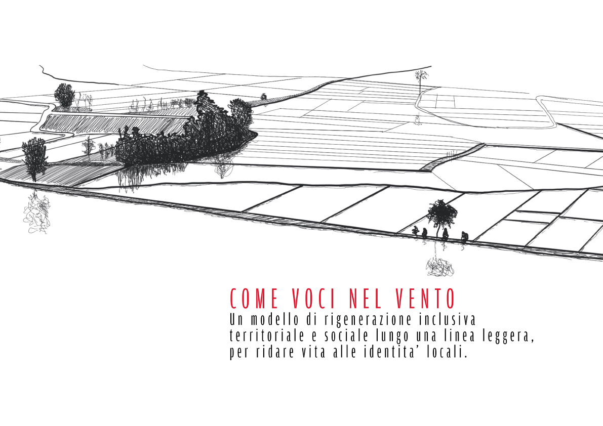 "Whispering Wind" is a project that aspires to generate sense of belonging through the synthesys of regeneration of fragile territories and social inclusion, in order to give a bright new future to historical agricultural heritage embracing principles of sustainability and accessibility.