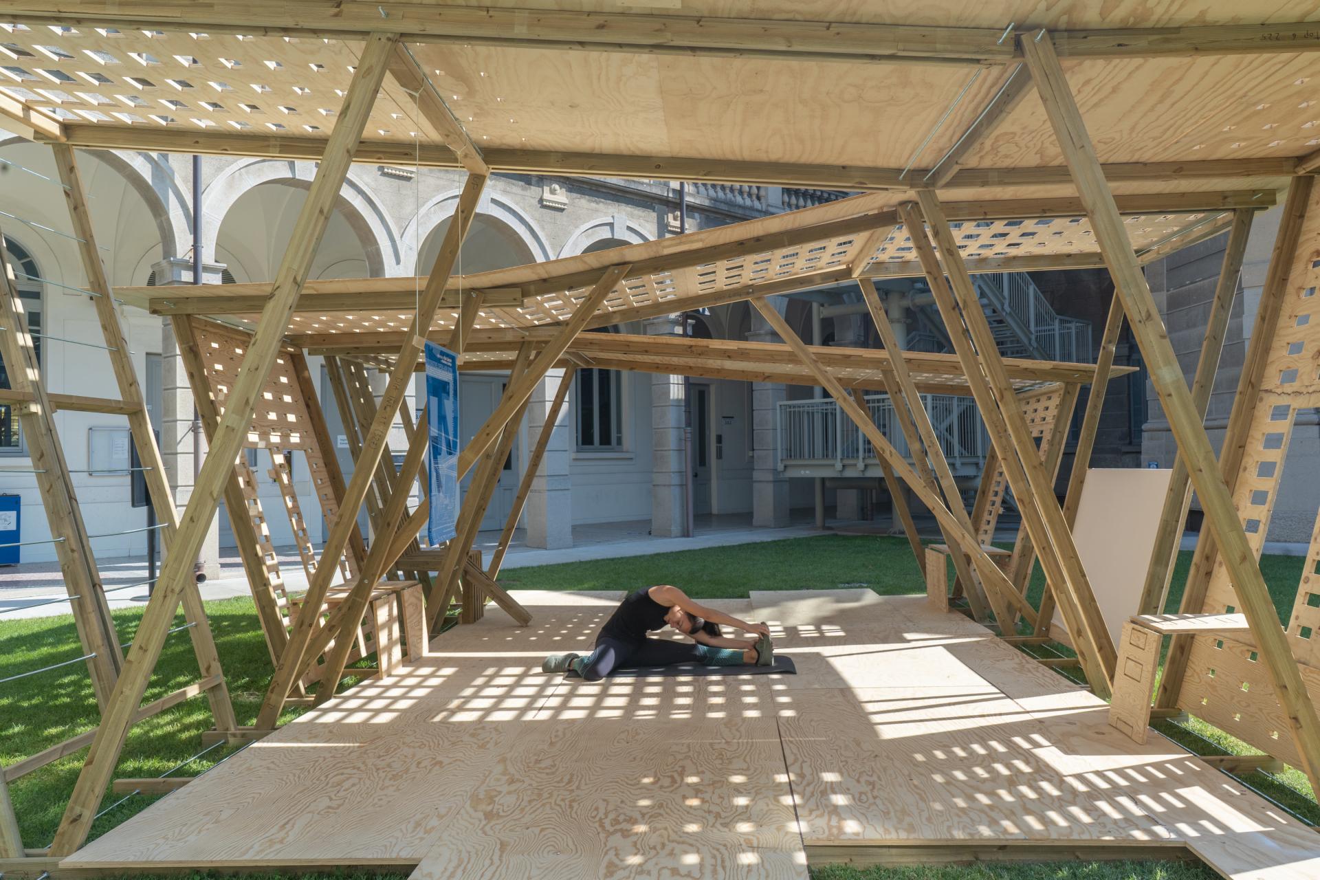 The Paolo Cascone’s Master Class has been developed in the frame of the Advanced School of Architecture directed by Pierre-Alain Croset at the Politecnico di Milano. This with the aim to bridge a social design agenda with an ecological construction and digital manufacturing approach. Therefore, 20 students from 16 different countries have been working for 8 intense days in translating the needs of the Bollate’s prison detainees for a more performative sport space in the form of an open-air gym.
