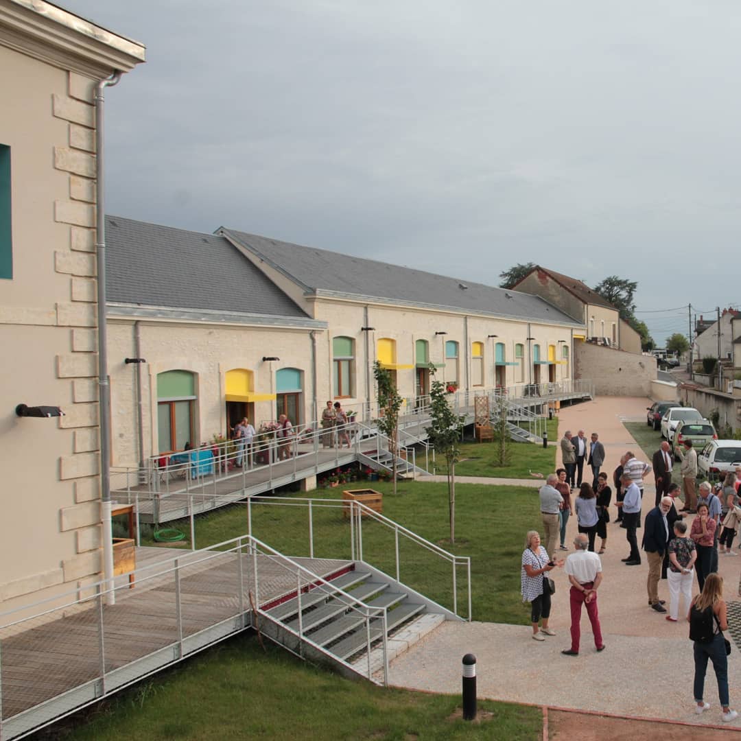 Concerned about issues of fuel poverty, the aging of the population and an unsuitable supply of social housing… the elected representatives of Sancoins were looking for innovative solutions. The meeting by Le Relais/Assimmo18 de Bourges made it possible to concretize a project to rehabilitate the former municipal school, disused since 2010, into 13 intergenerational social housing units adapted for ageing/handicap and a community hall. Mainly dedicated to the elderly, our partner Béguinage et Compagnie supports future tenants to prepare for their new life and unite new residents. Today, Assimmo18 manage the building and animate the life of the building and inhabitants.
