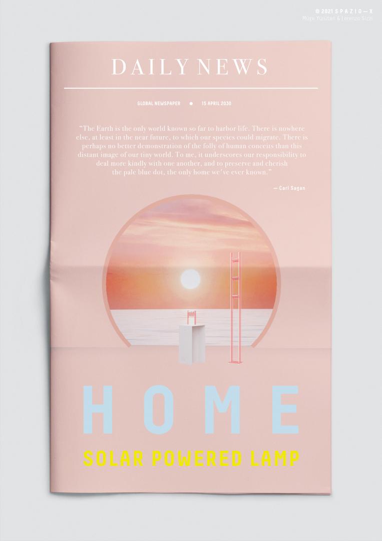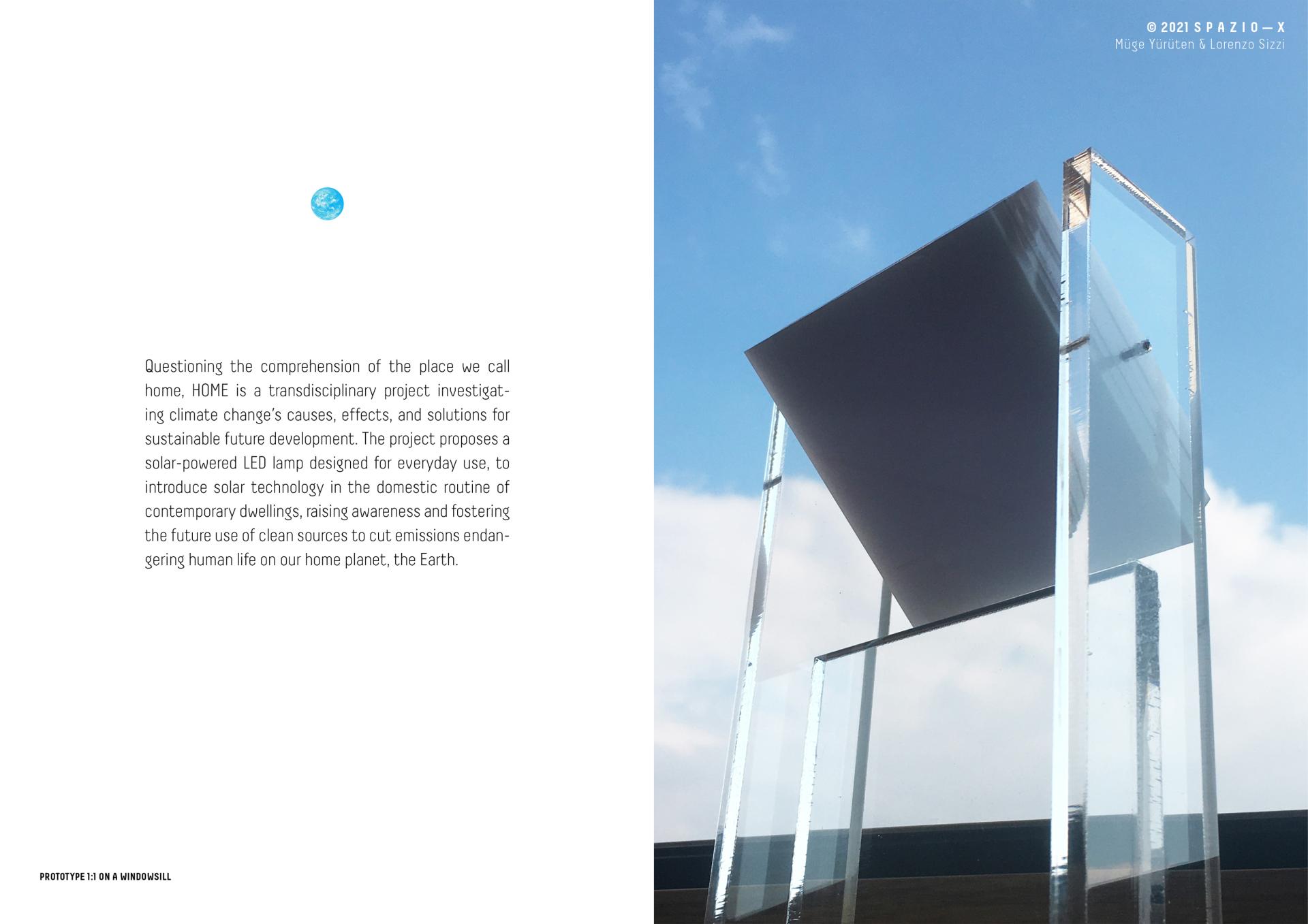 Questioning the comprehension of the place we call home, HOME is a transdisciplinary project investigating climate change’s causes, effects, and solutions for sustainable future development. The project proposes a solar-powered LED lamp designed for everyday use, to introduce solar technology in the domestic routine of contemporary dwellings, raising awareness and fostering the future use of clean sources to cut emissions endangering human life on our home planet, the Earth.