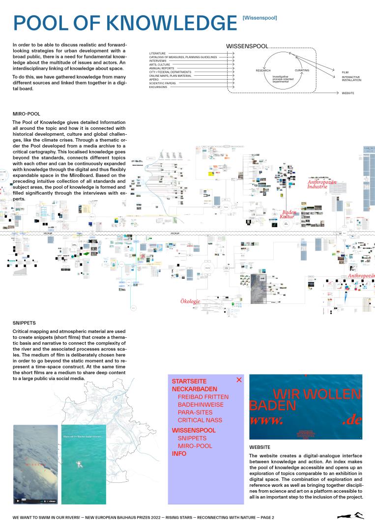 With the Pool of Knowledge collected information from different sources of expertise around the river is made accessible to everyone via a website and social media. The communicated information about why swimming is not allowed in the Neckar in Stuttgart, for example, empowers the citizens to demand new laws and structures.