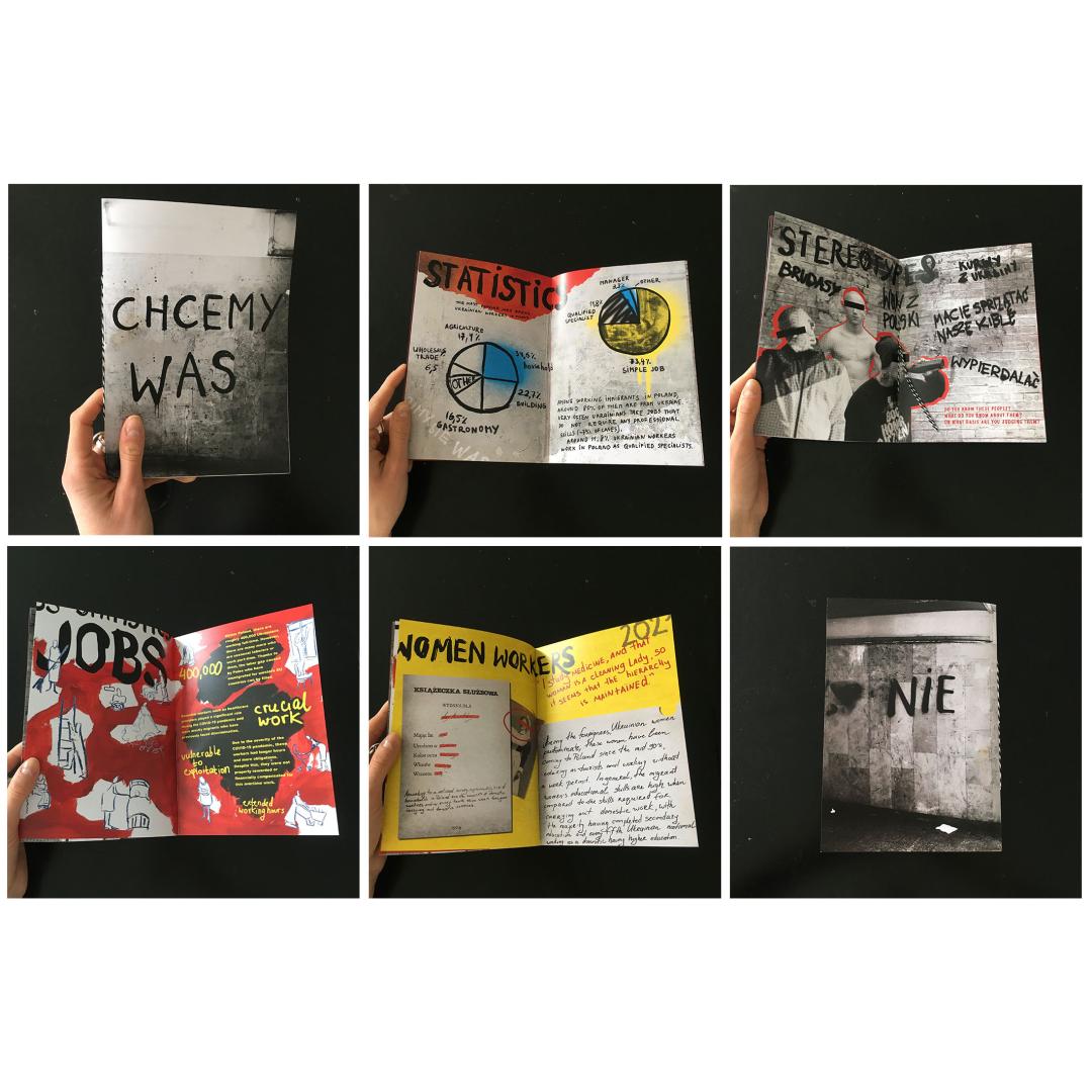 The subject of our research was Ukrainians working in Poland. We wanted to consider inequalities and discrimination. The purpose of the project was to appeal for equal rights, to make Poles aware of the important role that migrants play for our economy, and to strengthen ties between Poles and Ukrainians. To achieve this, we used various methods, building the project based on various media. The first zine was created, printed to deliver to cafes. This small publication easily presents statistics and facts. Then we created a social campaign dedicated to social media, as well as a documentary video with interviews with Ukrainians and Poles. The strong, provocative visual style was meant to attract and encourage discussion. The message of our video is uplifting, it shows the universal truth that we are so similar and we strive to achieve similar goals. All parts can function both together and independently, so we see great potential in further showing the individual parts of the project.