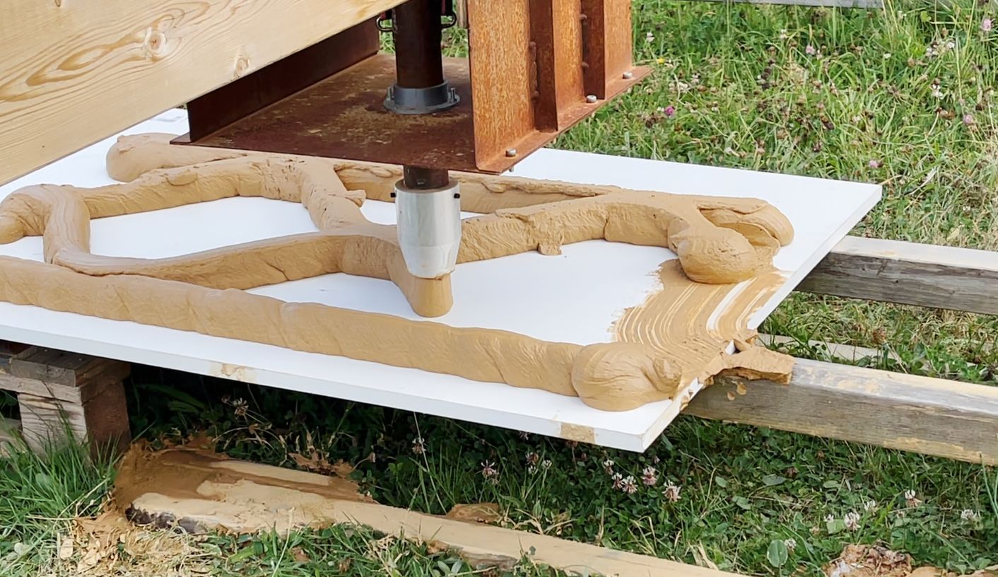Our technique saves a lot of construction costs and energy by producing buildings with only raw earth printed layer by layer (as many ancestral earth construction techniques) and a lattice structure, and without hydraulic binder. This additive manufacturing process allows for less material usage: we use just the amount of material we need.