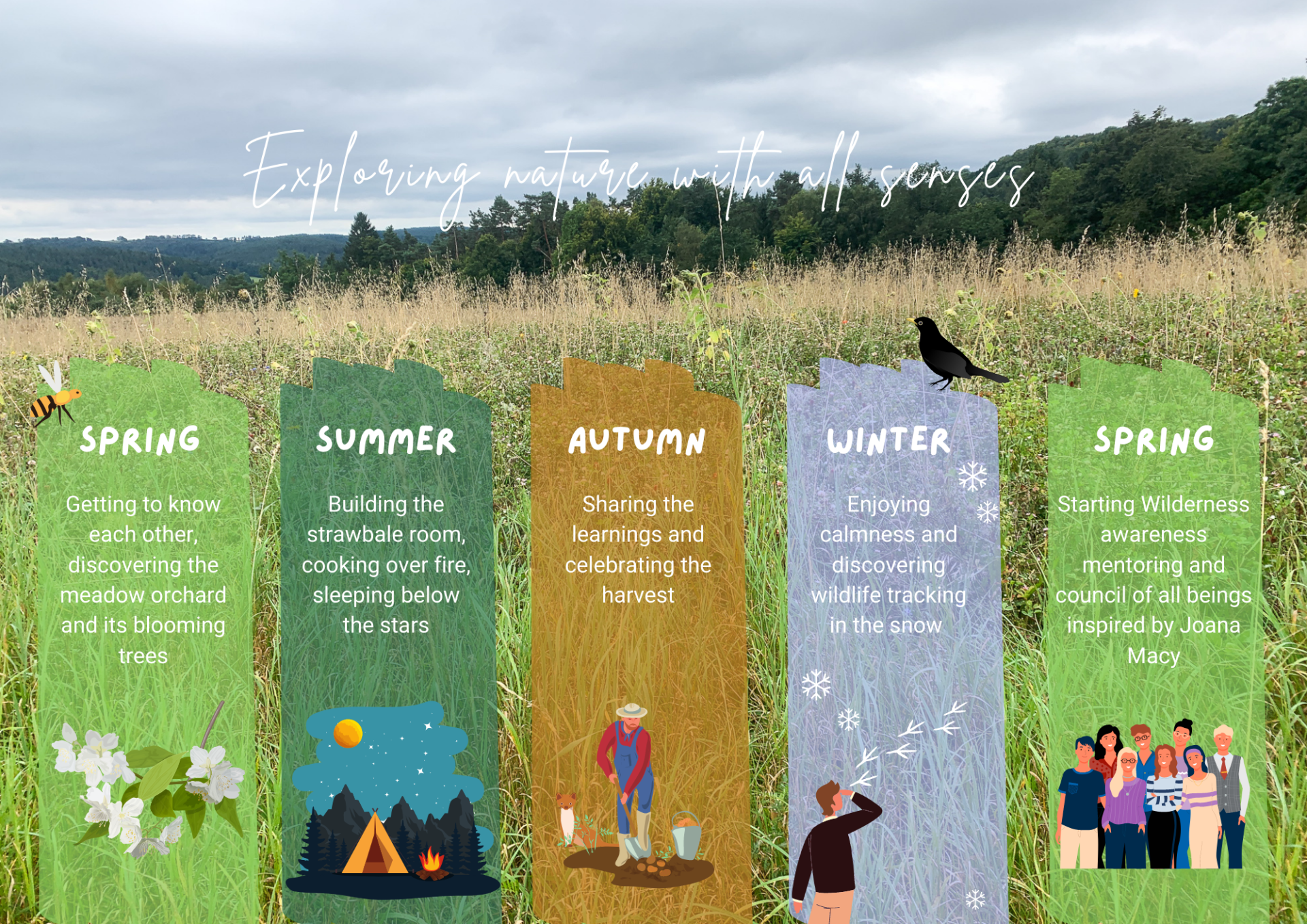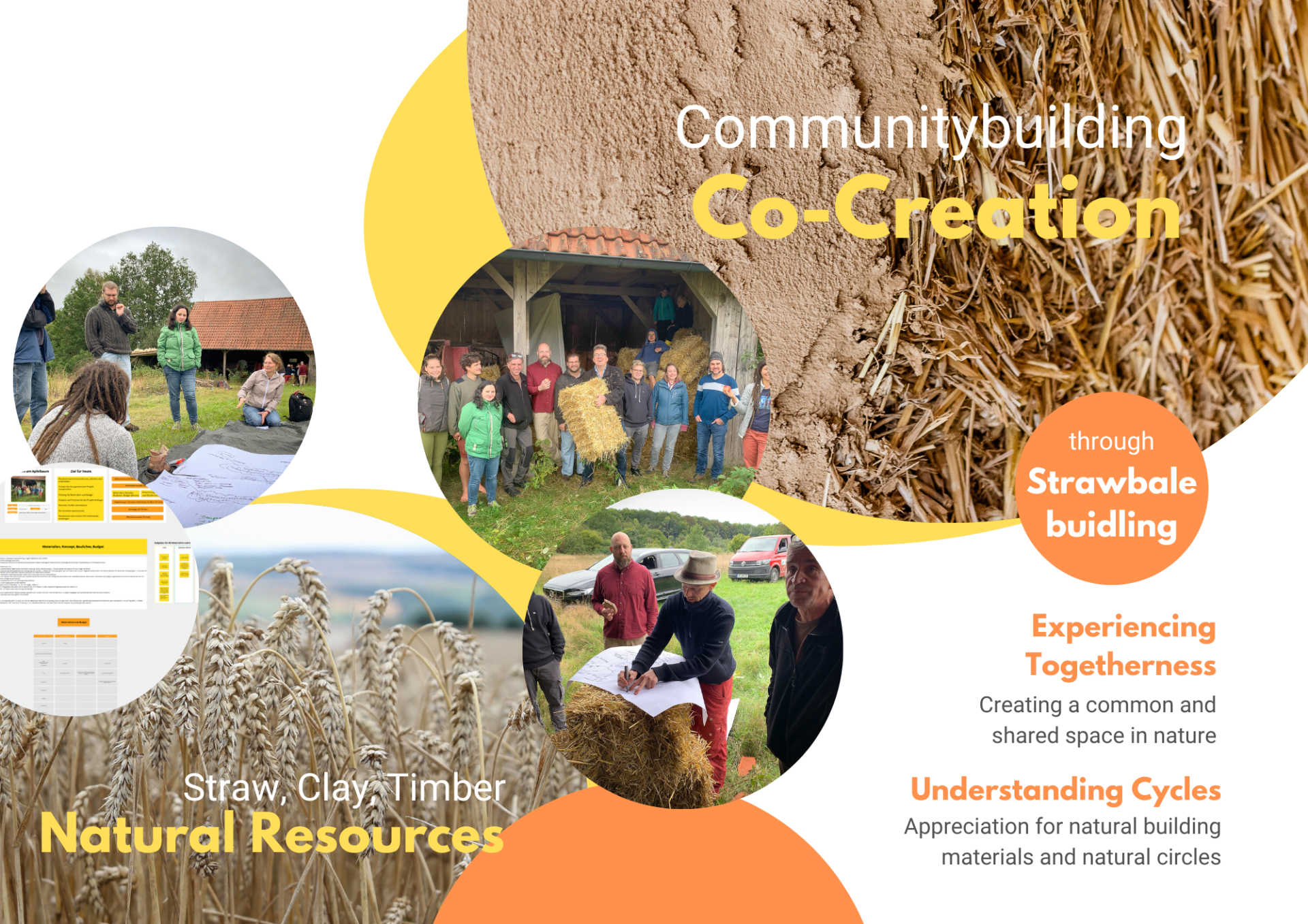 By building a strawbale room at a meadow orchard a network grows together as a community which co-created this shared space in nature. In the process, they discover the beauty of life’s circularity and of natural materials. An understanding of straw and clay as regenerative resources, as sensual designers and as social networkers emerges. Through wilderness awareness and deep ecology, the created space will serve as a portal to reconnect with the landscape, its living beings and nature itself.